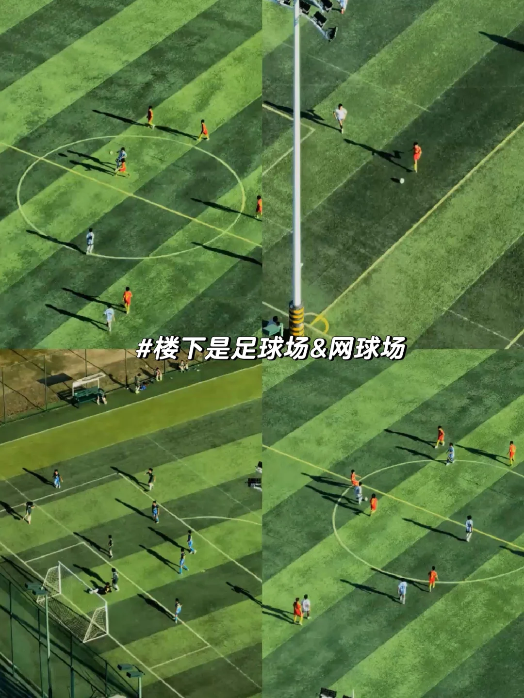 推开窗就是整片绿意,楼下正好有小朋友在踢足球,年轻气息拉满。