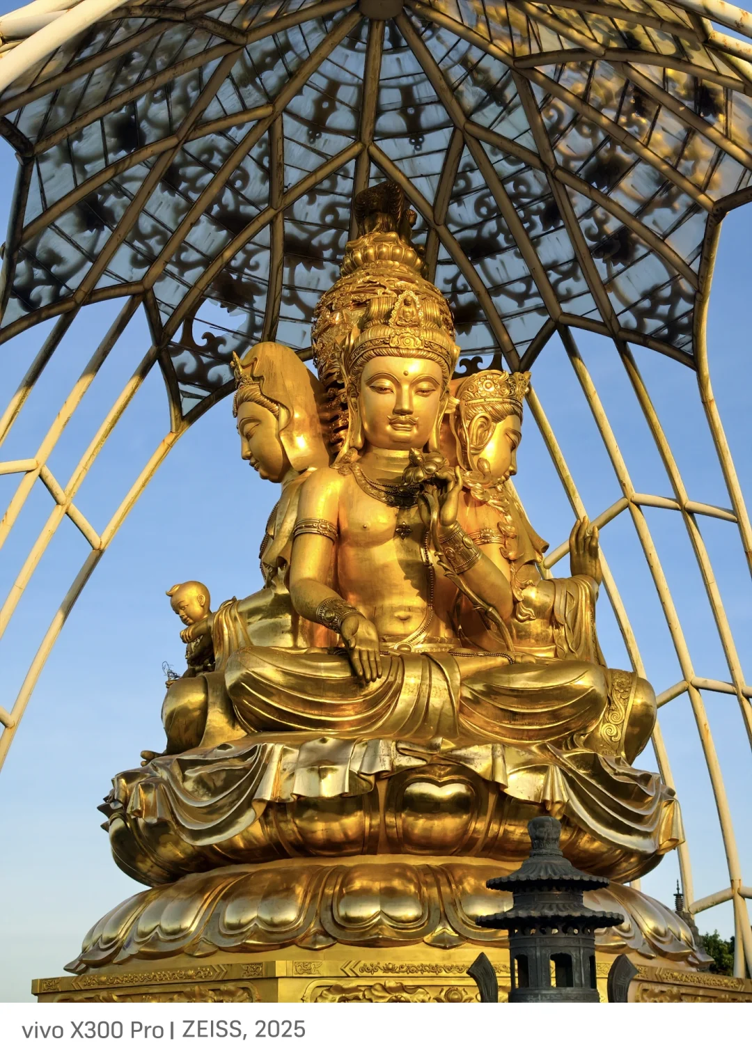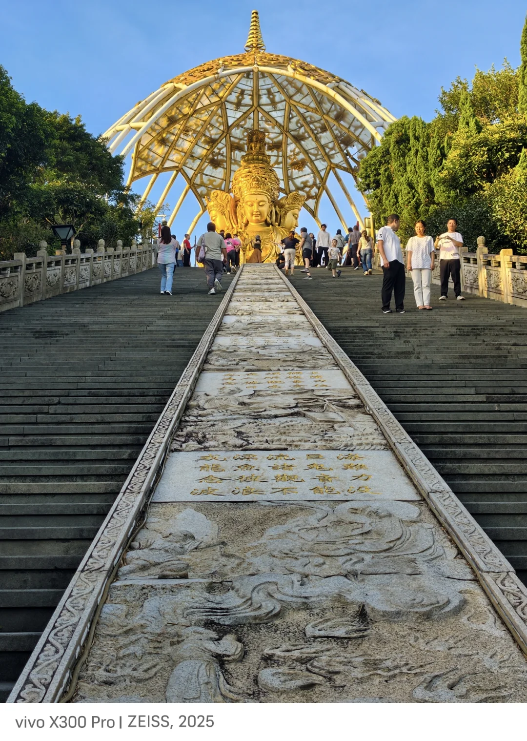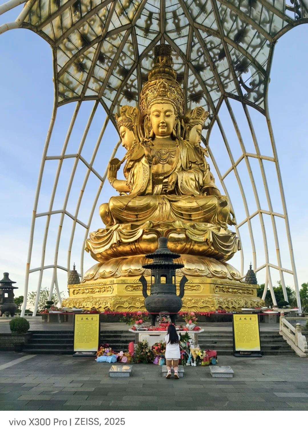 山顶的23.3米高四面观音金像,分别象征平安、事业、子嗣和财富,顺时针参拜,心诚则灵~