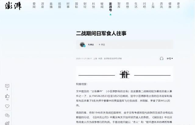 关于二战期间日本陆军和海军发生的食人行为,历史学界已有大量解密档案、战犯审判记录