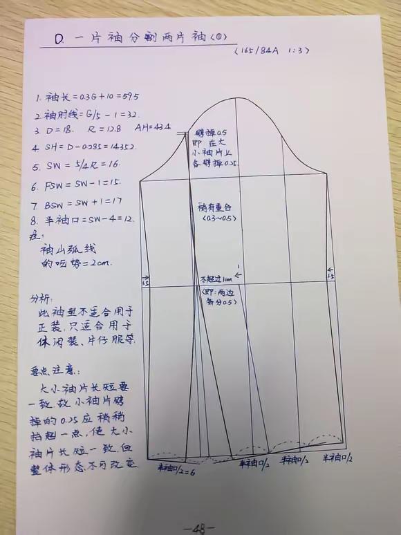 一片袖变两片袖。服装制版 服装裁剪 服装打版 制版 服装设计