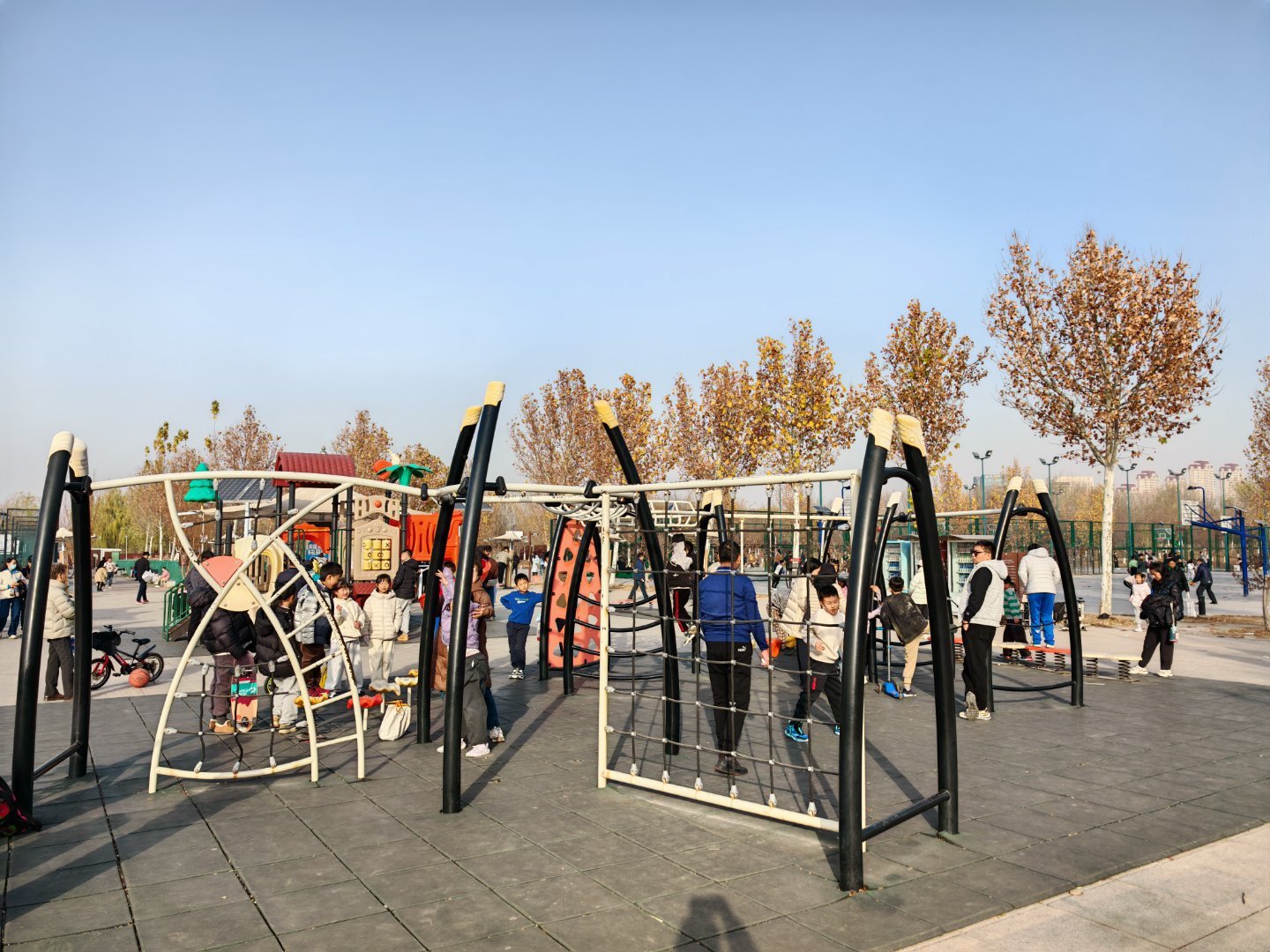 今天这天气是真好,公园里全是带孩子来健身锻炼的人。玩玩游乐设施打打球,不辜负这好天气永远可以相信天津人的运动热情