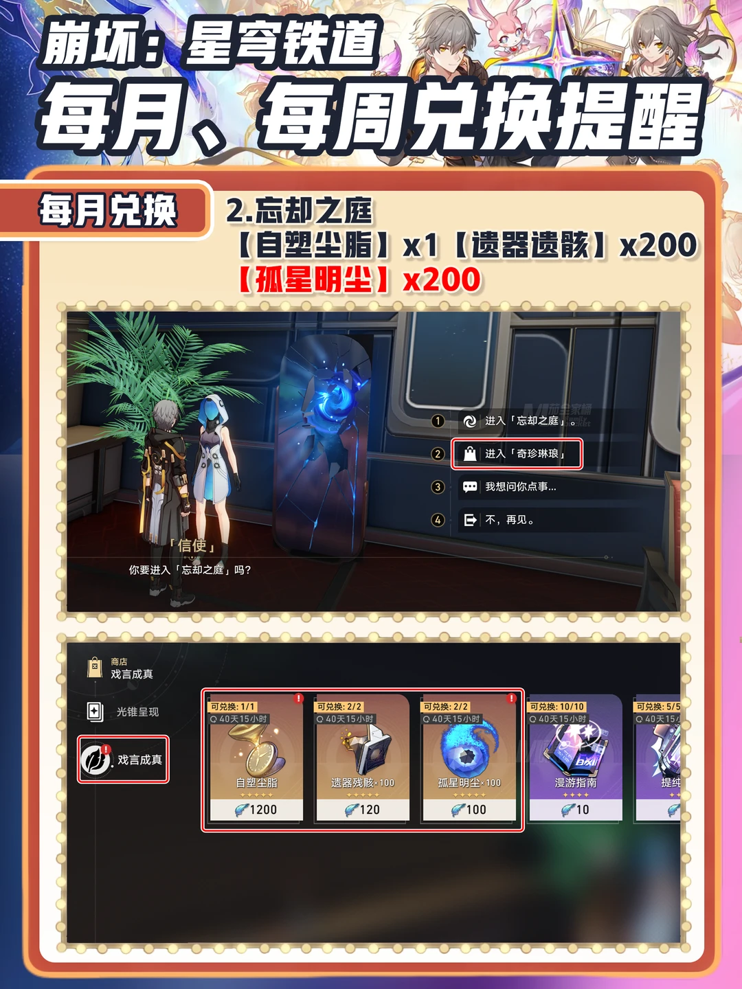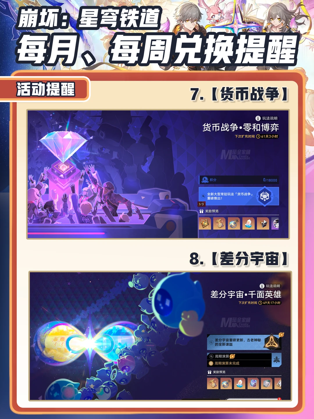 崩坏星穹铁道|每月每周必拿活动资源攻略 自塑尘脂和每月10抽这两个不要忘哦 「货币战争」「模拟宇宙」为双周奖励,记得打哦~