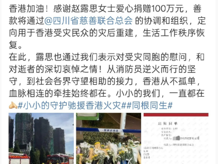 赵露思向香港受灾民众捐赠100万,用于灾后重建,好暖心啊!