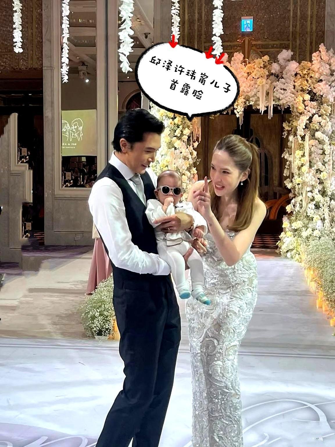 邱泽抱着儿子满脸宠溺,小家伙带着墨镜出场,见证了爸爸妈妈的婚礼 许玮甯穿着