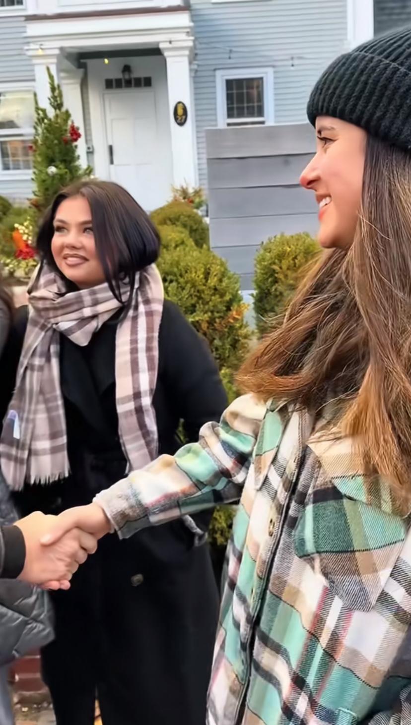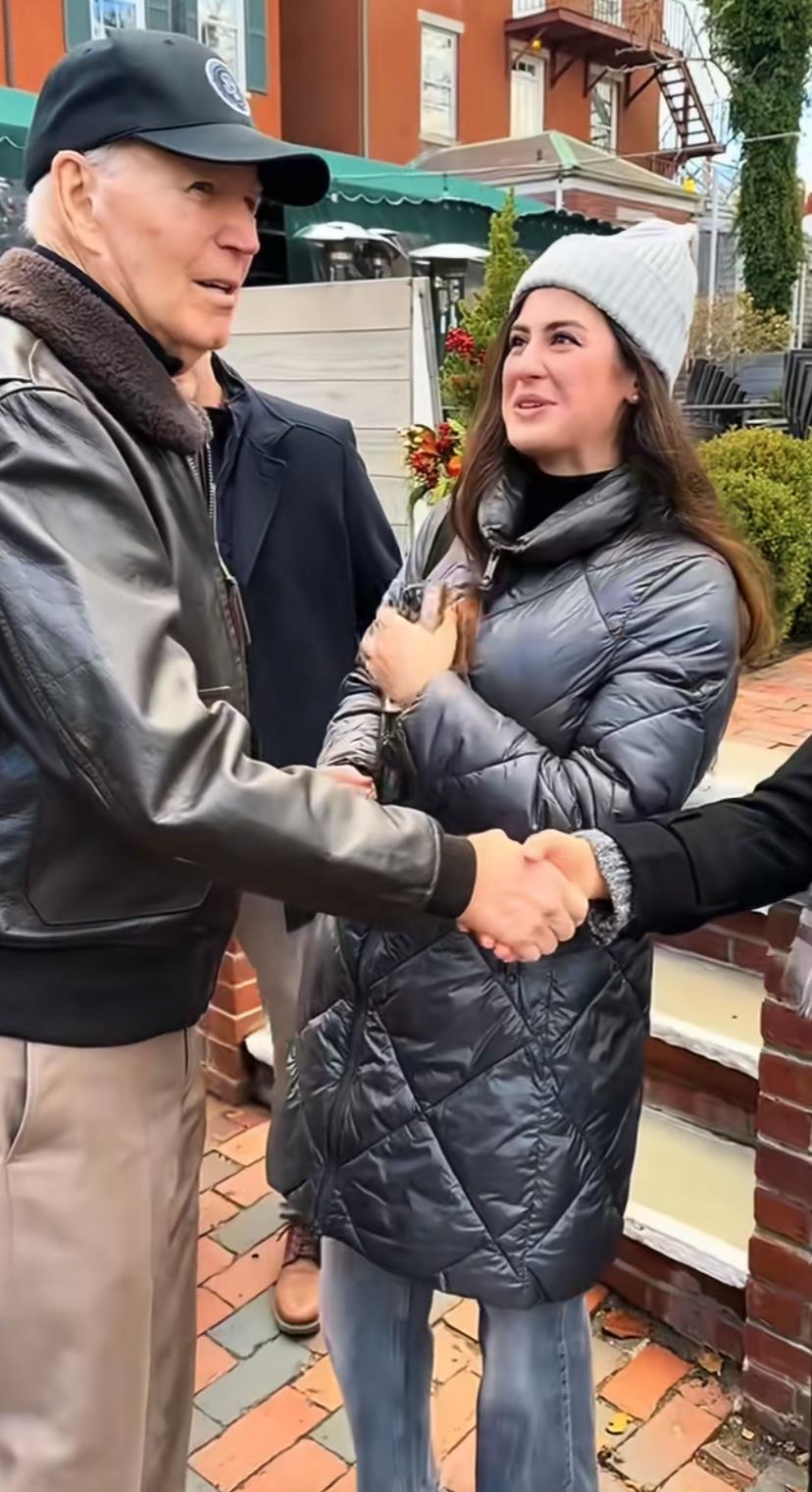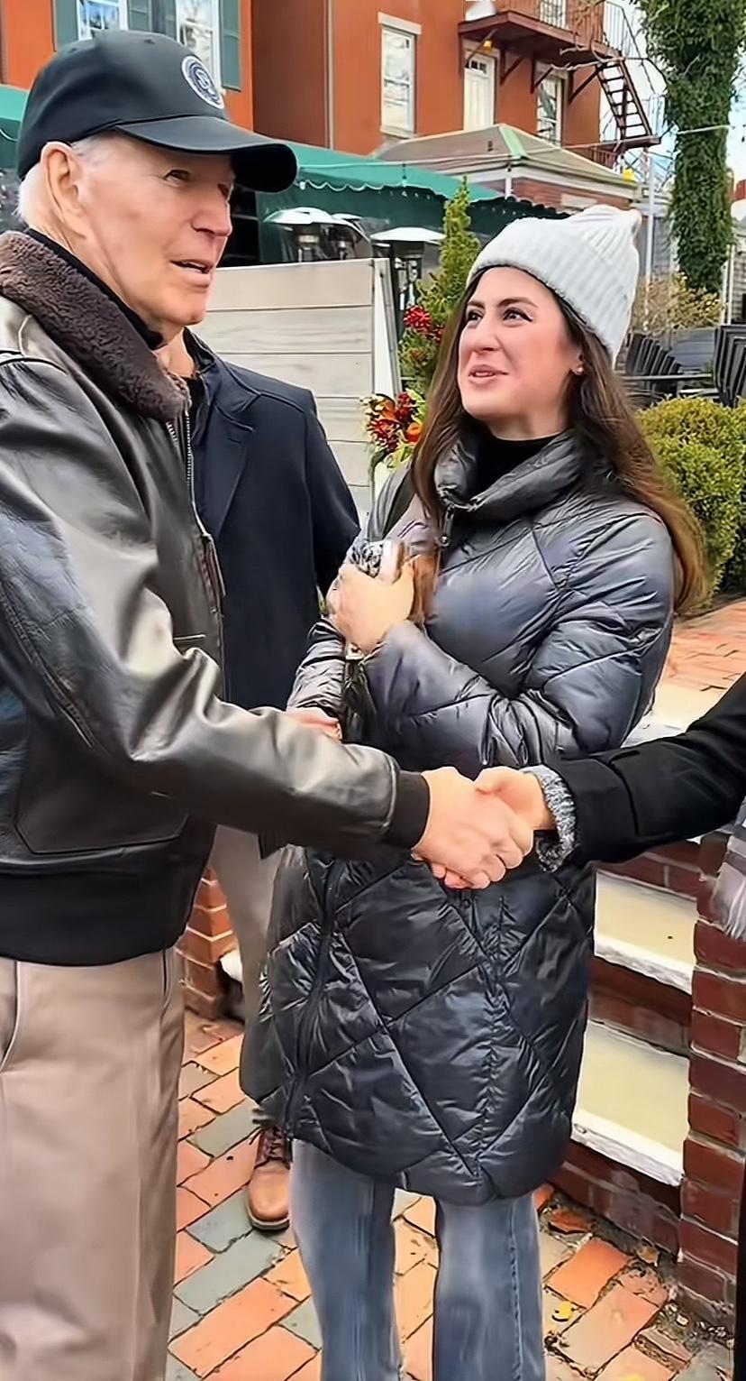 拜登上街了,碰到几名女子,热情上去聊天,一个一个分别握了手!几名女子带着崇拜的小眼神看着他,没有一点大腕感觉,老头看上去身体不错!