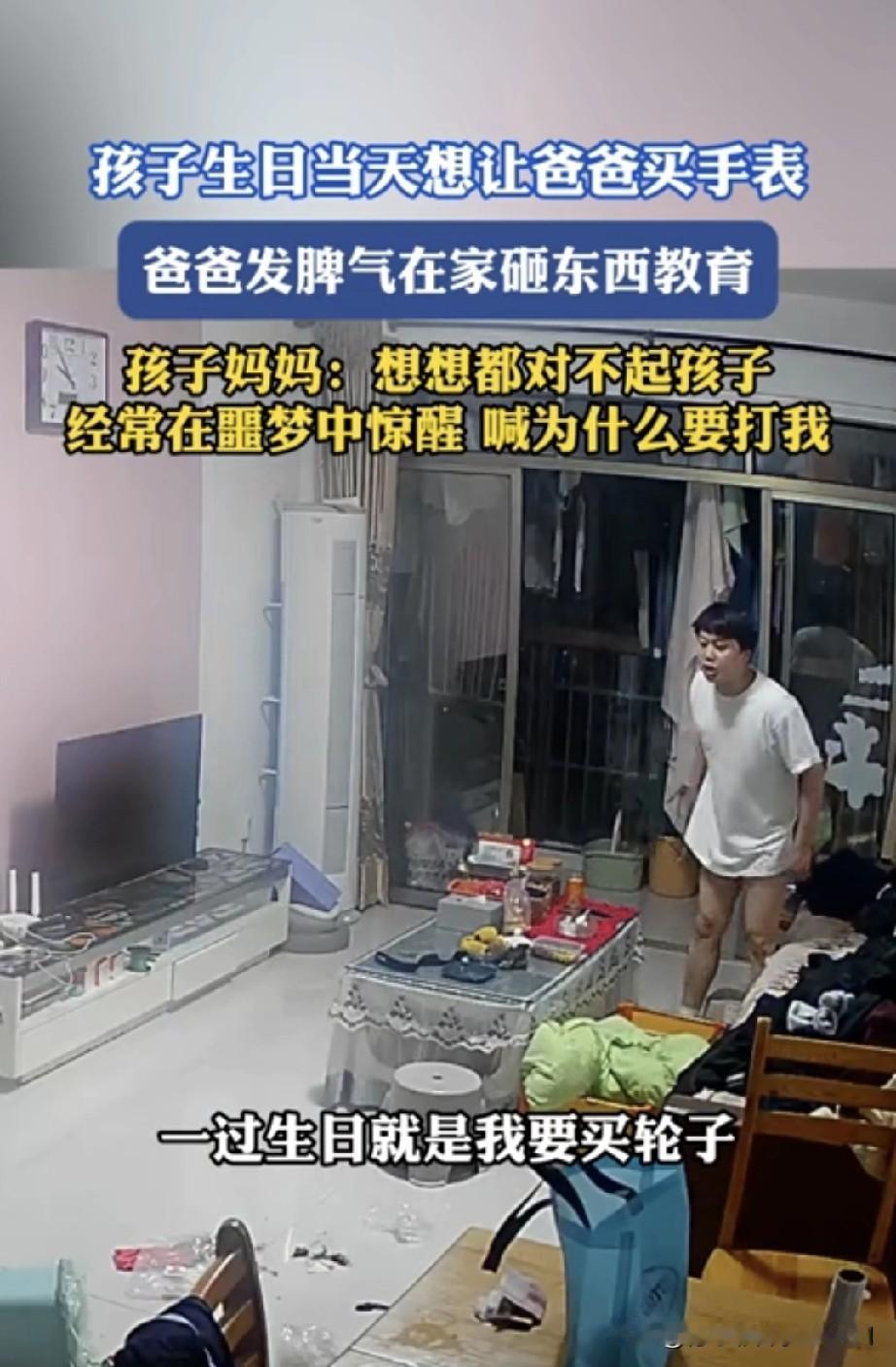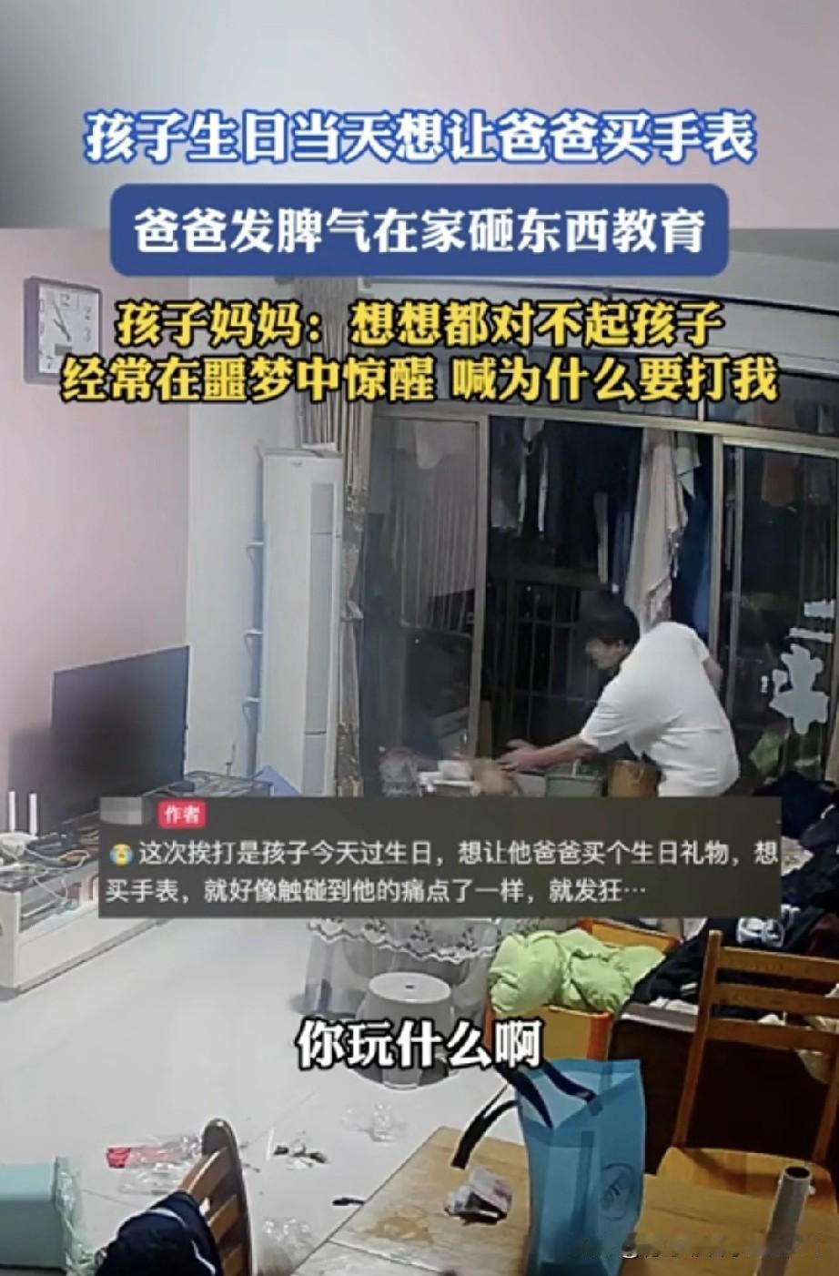 孩子生日当天,想让爸爸买个电话手表当生日礼物,没想到这竟惹得爸爸大发雷霆,在家里砸起了东西,吓得孩子哇哇大哭。孩子爸爸抱怨道,孩子一过生日就要买钓竿、买滑轮,还不好好学习。 看得出,这位父亲并非头一回遇到这种事。从他的话里能听出,小孩子已经养成了索要礼物的习惯,总会找各种理由要礼物,这次的电话手表不过是个导火索。倘若第一次索要礼物时就没被满足,孩子还会一次次提要求吗?大概率是此前孩子的要求被满足了很多次,这次父亲实在是力不从心,才压制不住怒火发了脾气。 在孩子心里,妈妈惯着自己,妈妈就是好人;爸爸不买礼物,爸爸就是坏人。妈妈总是和孩子站在同一战线对抗爸爸,这位父亲被压垮崩溃了。他赚钱不易,所有压力都一人扛着。他这次爆发,百分百是因为老婆也跟着儿子胡闹。但凡老婆能劝劝儿子,这位父亲也不至于如此。 我觉得爸爸本身没什么问题。孩子一过生日就提要求买这买那,虽说一年就一次,但也得考虑家庭条件,量力而行。比如今年生日要很贵的鞋子,明年要手表,后年要手机、电脑、平板……孩子生日本是开心事,一家人买个蛋糕,出去吃顿好的,或者在家做点孩子爱吃的也挺好。有条件时偶尔给孩子买个礼物,但这并非孩子每年的特权。 话说回来,不管怎样,爸爸都不该在孩子面前发飙。一个成年男人,即便有再多无奈,也不该如此,这还是自身素质问题,缺乏担当。正常孩子有需求很正常,完全可以好好沟通。父母的行为就是孩子的一面镜子……