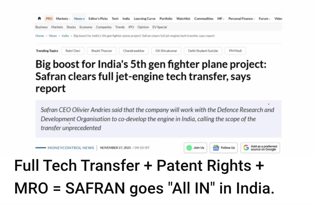 印博主:法国和印度将共同研发五代战机航空发动机。 11月27日,印度博主爆料称法国赛峰集团将向印度转让M88发动机核心技术,并在此基础上联合为AMCA五代机研发配套发动机。 此消息随即得到印度国防部长辛格公开确认,成为印度航空工业的重大新闻。 赛峰集团首席执行官随后表态,新发动机将定位于120-140千牛推力,完全匹配AMCA战斗机的隐身、超音速作战需求。 此前,印度与法国在“阵风”战斗机采购、直升机发动机联合开发等多个领域已形成深度合作,印度累计采购62架“阵风”,并推动本土组装,赛峰还在海德拉巴建有M88维修中心。 印度自1986年启动“卡弗里”发动机项目,投入35亿美元、耗时三十余年,最终干推力仅49千牛,远未达标,2014年正式宣告失败。 正因如此,印度长期依赖美制F404、F414发动机。AMCA作为印度自研五代机,动力系统迟迟无解,项目进展缓慢。此次与法国联手,被印度媒体视为打破瓶颈的历史机遇。 M88-2发动机虽成熟,但面对五代机的高性能要求,必须在涡轮温度、材料工艺和智能管理系统等领域实现突破。赛峰官方建议以M88核心机为基础“重新设计”,以适应AMCA的作战需求。 值得注意的是,赛峰曾在2025年巴黎航展展示M88 T-REX改进型,目标推力125-130千牛,定位于法印第六代战机。而M88-3推力仅90千牛,和印方要求仍有差距。 技术转让的“含金量”也引发质疑,法国自身下一代NGF战机的发动机尚处研发初期,尚未造出原型机。外界认为,印度获得的技术很可能不是最新一代,“100%转让”更多是商业表述。 而在发动机核心技术转移中,陶瓷基复合材料、单晶涡轮叶片等“热端技术”长期被视为各国军工核心机密。法国是否会如约转让全部关键技术,存在不小的不确定性。 从利益层面看,这其实是一场双向互补的合作。法国希望在全球军工市场获得长期资金和订单,同时巩固在印度的市场份额,为后续更高级别合作积累资源。 对印度来说,除了补齐发动机短板,还能借助法国技术推动“印度制造”战略,减少对美俄装备依赖,提升自主可控能力。 合作计划,AMCA项目按两阶段推进。Mk1批次先用美制F414发动机(单台推力98千牛),Mk2再换装国产或联合研发发动机。印空军计划采购120架,2032年认证,2035年量产。 从官方表态看,赛峰集团保证全程参与设计、测试和生产,协助印度实现发动机本土化生产。项目周期长达12年,充分考虑了技术转移、试制、测试和工业化量产的复杂流程。 但技术路线并不轻松。M88发动机核心机能否直接升级到120千牛以上仍有巨大挑战。压气机设计、燃烧室温控、材料耐热极限等领域,印度此前积累有限,赛峰也需技术突破。 印度空军对AMCA寄予厚望。新机型具备S型进气道、内置弹舱、隐身涂层等五代机典型特征。最大起飞重量25吨,作战半径1620公里,目标是全面对标巴基斯坦歼-35等区域强劲对手。 但回顾印度军工发展史,“项目延期”几乎成了常态,AMCA能否按2035年目标量产,业内人士多持保留态度,也就是认为完成不了。 赛峰集团与印度燃气涡轮研究院(GTRE)的深度合作,理论上有助于提升印度航空动力研发水平。但发动机作为“技术资金双密集”领域,真正实现自主仍需跨越一系列技术和管理门槛。 项目总投资70亿美元,足见双方决心。但就全球经验来看,五代机发动机的研发难度极高,仅有极少数国家能自主掌握,且往往需要数十年持续投入。 不少专家指出,印度缺乏大推力发动机核心技术的制造经验。此前“卡弗里”项目35年未果,成为印度军工的一大“心病”。这次与法国合作,难度并不会低于以往。 量产目标也面临印度工业基础和品控能力的双重考验。发动机涉及上百道精密制造与装配工序,对材料、工艺、测试能力要求极高。一旦产线不稳定,后果可能是批量故障甚至安全事故。 巴基斯坦歼-35隐身战机已进入量产倒计时,地区军备竞赛愈发激烈,印度希望通过AMCA项目实现技术弯道超车,但窗口期并不宽裕。 截至11月29日,印法双方尚未披露具体实施细节和时间表,外界普遍认为,即使一切顺利,2035年量产也极具挑战,技术消化和产业转化过程充满变数。 这场合作是印度航空动力发展的新尝试,也是印度军工体系突破自我的一次重大赌博。最终能否实现五代机动力自主,还是重蹈“卡弗里”项目的覆辙,目前还无定论。 不管最终成败,印法五代机发动机项目的推进,将深刻影响印度未来十年的空军实力版图。对于关注全球军工动态的人来说,这场合作值得持续关注与冷静观察。 参考信源: 100%技术转让,法国助力印度打造五代机“心脏” 2025-08-27 07:20·环球网