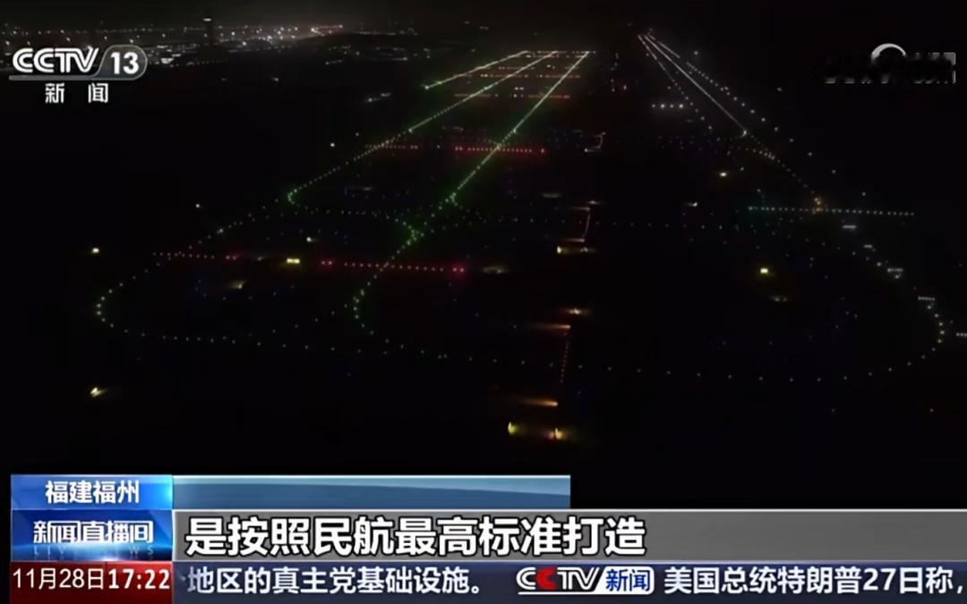 好消息!随着主跑道上的12000多个助航灯依次点亮,长3600米、宽45米的福州