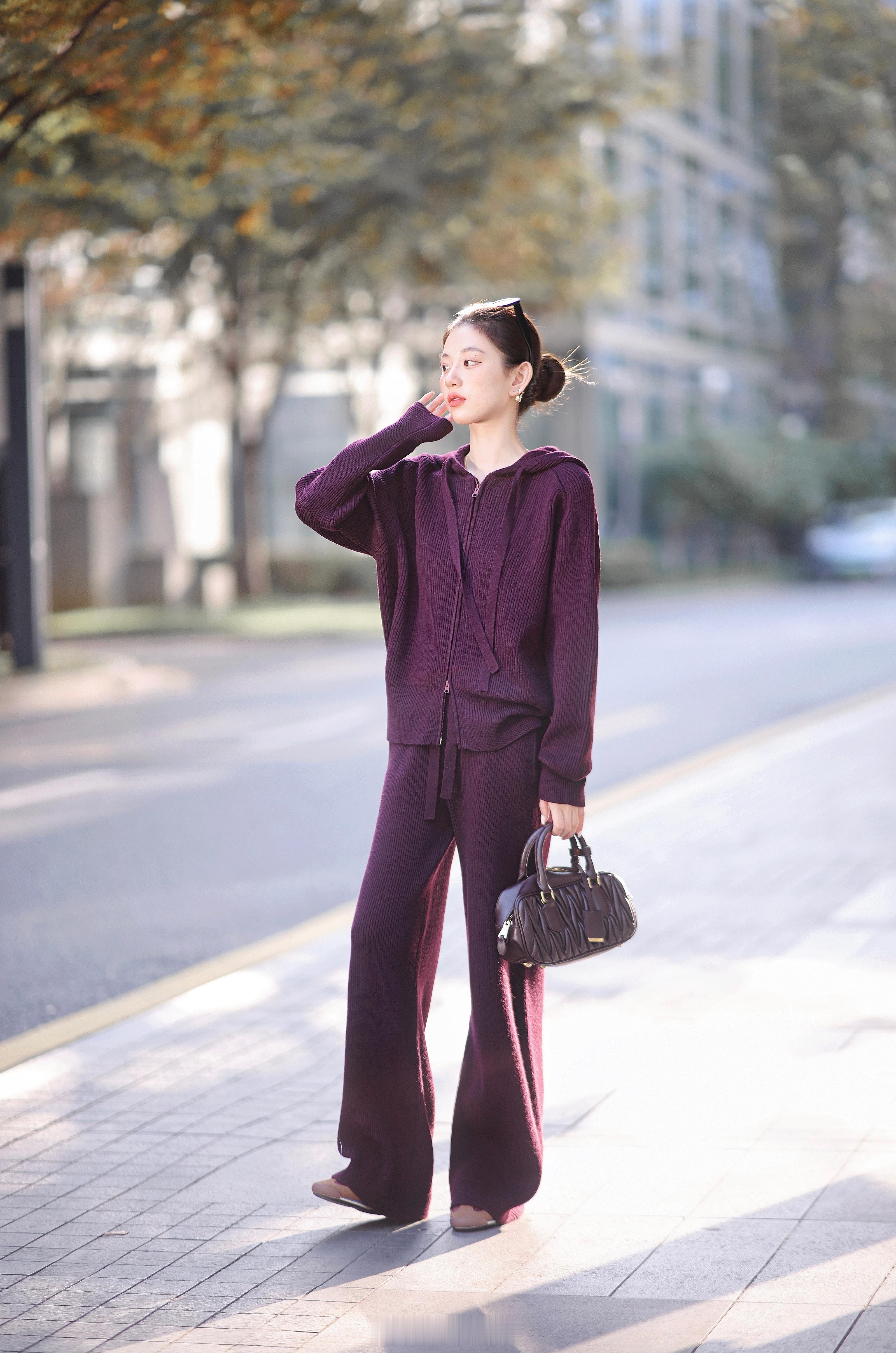 简直360度的美丽显瘦!德国扬子纱100精纺羊毛“开衫+休闲裤”暖和密实又柔软秋
