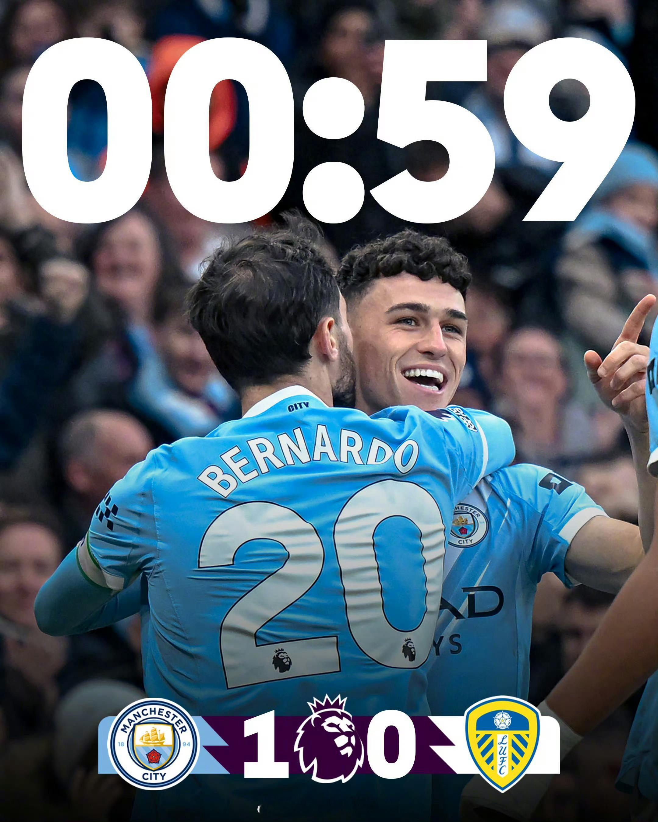 曼城vs利兹联福登的进球是本赛季至今英超最快进球曼城1-0领先利兹联英超联赛体坛风云
