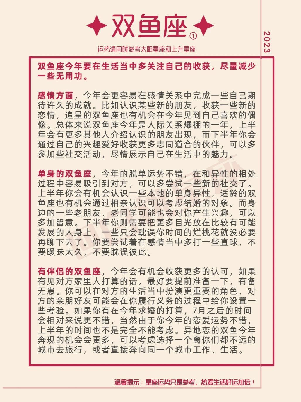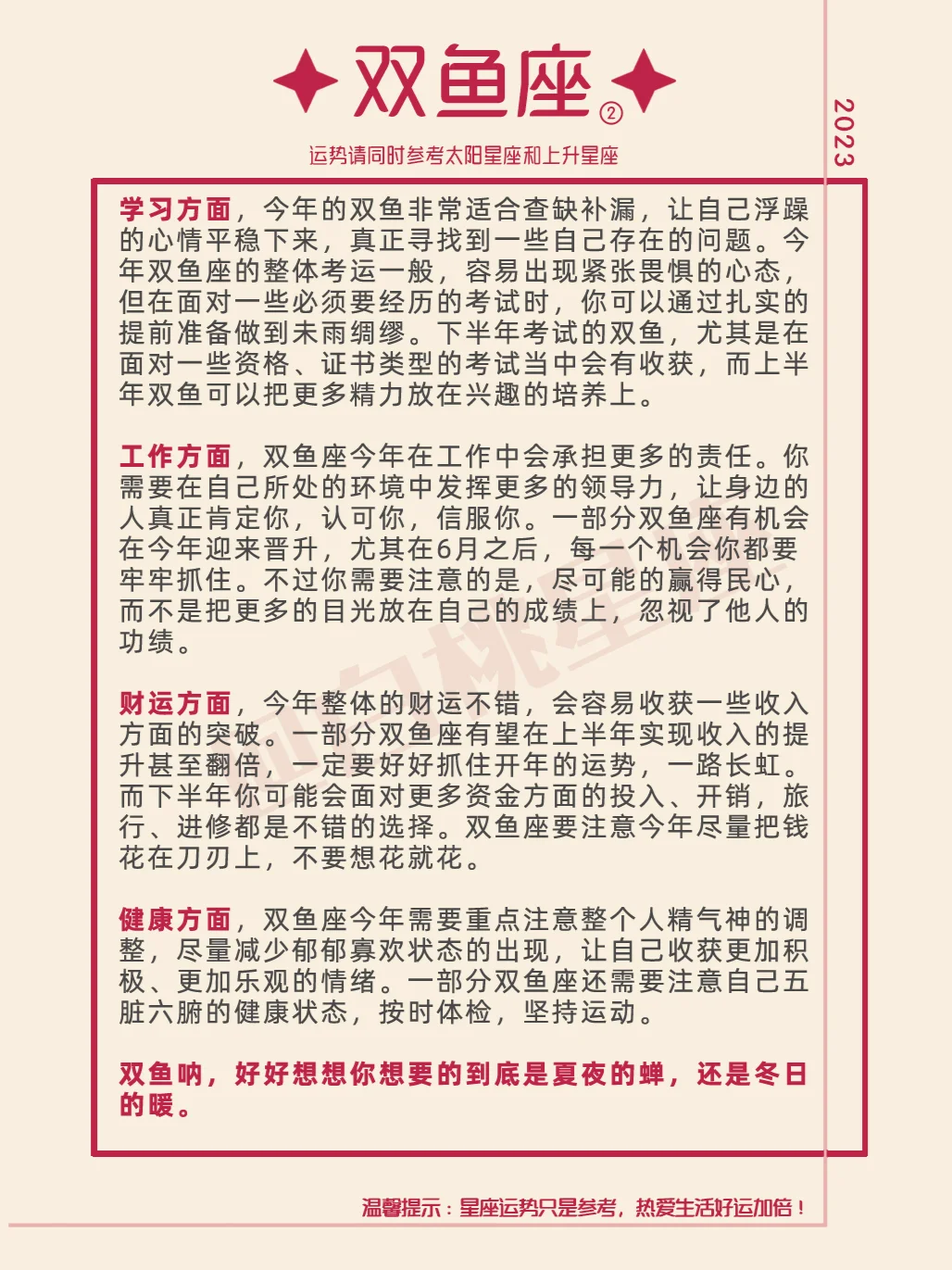 『白桃星座』双鱼座2023年运