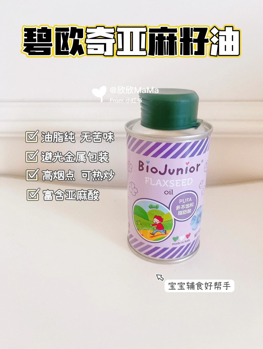 这款辅食油也是我一直在用的,它亚麻酸含量55%,是牛油果油的90倍,亚麻酸可在人体内转化为DHA,并且它的味道清淡,宝宝容易接受,烟点231度,无论是加进米粉里或者粥里、面条,或者热炒都可以。它是金属包装,避光性好,可以更好的保存保证营养的不流失,每次我做辅食我都会滴几滴,宝宝爱吃,用的放心.
