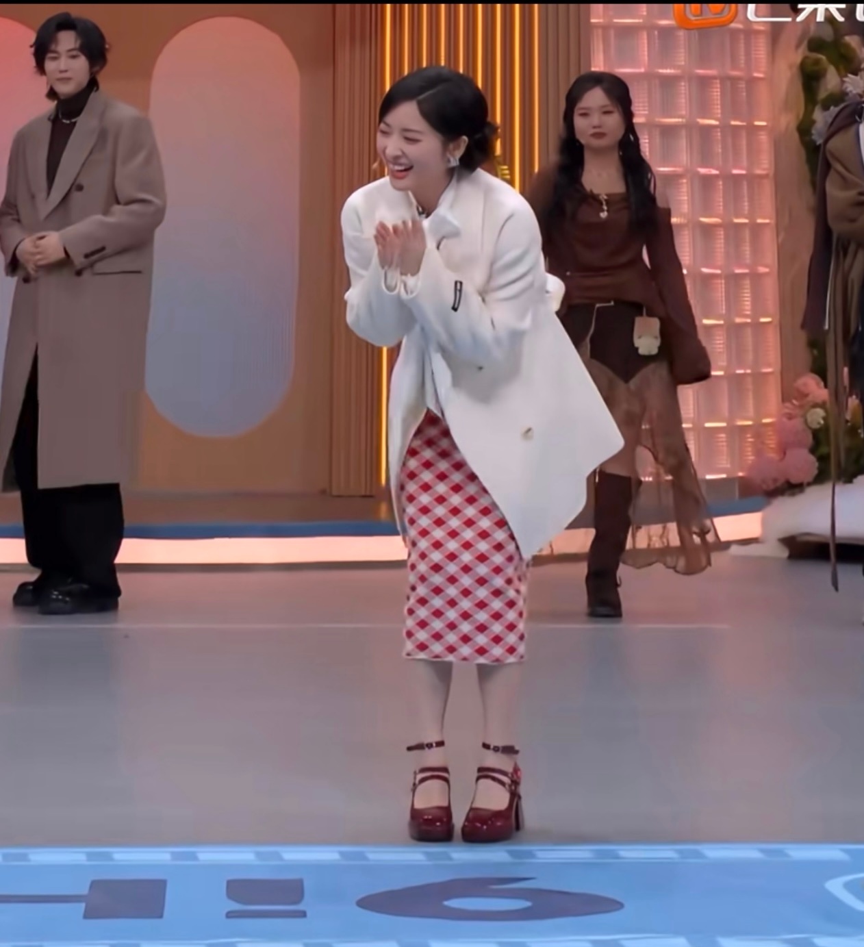 吴艳妮在成都穿着短裤大腿看起来很粗壮,表情自信又张扬