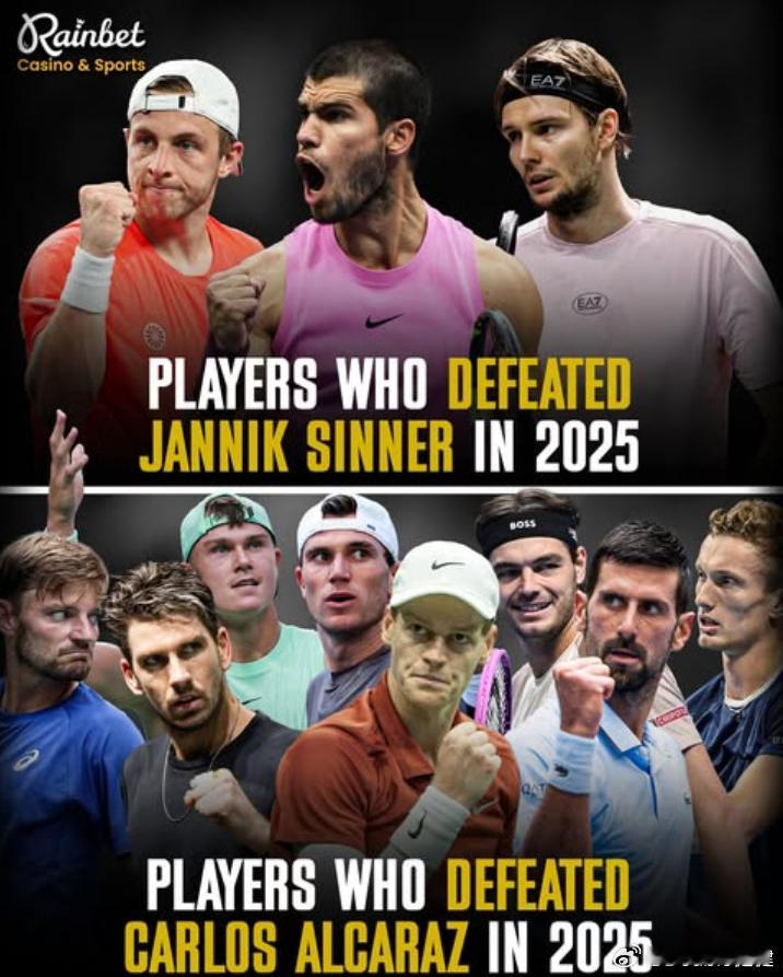 今年击败辛纳的球员有3人今年击败阿尔卡拉斯的球员有8人你们印象最深分别是谁?热点现场