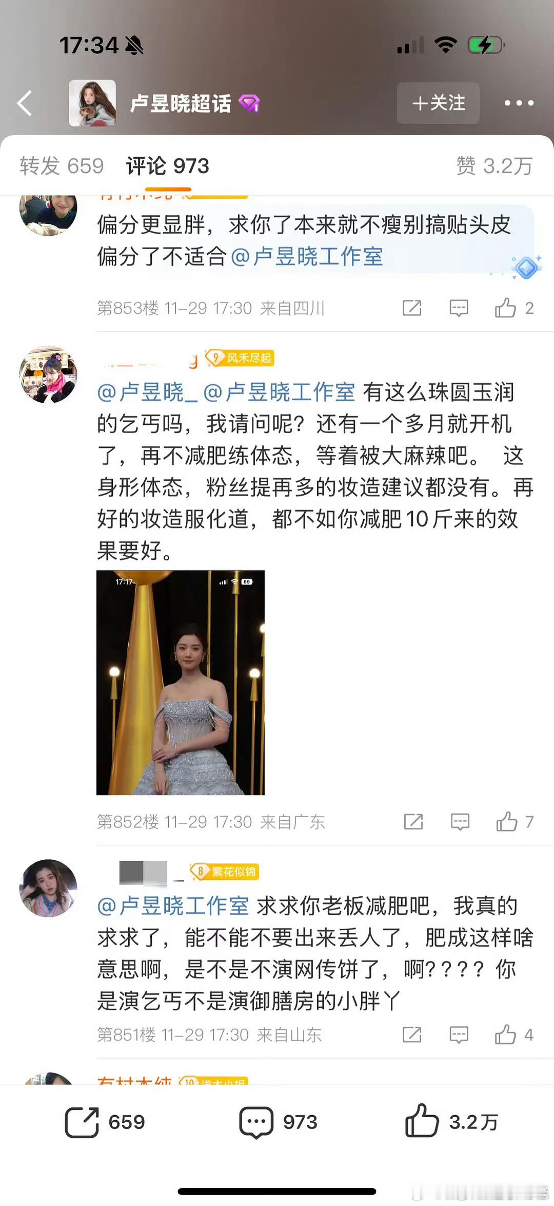 卢昱晓粉丝因为对发型不满意,麻辣卢昱晓工作室。的确披肩发更美啊,可以遮住背,还可以挡一下脸