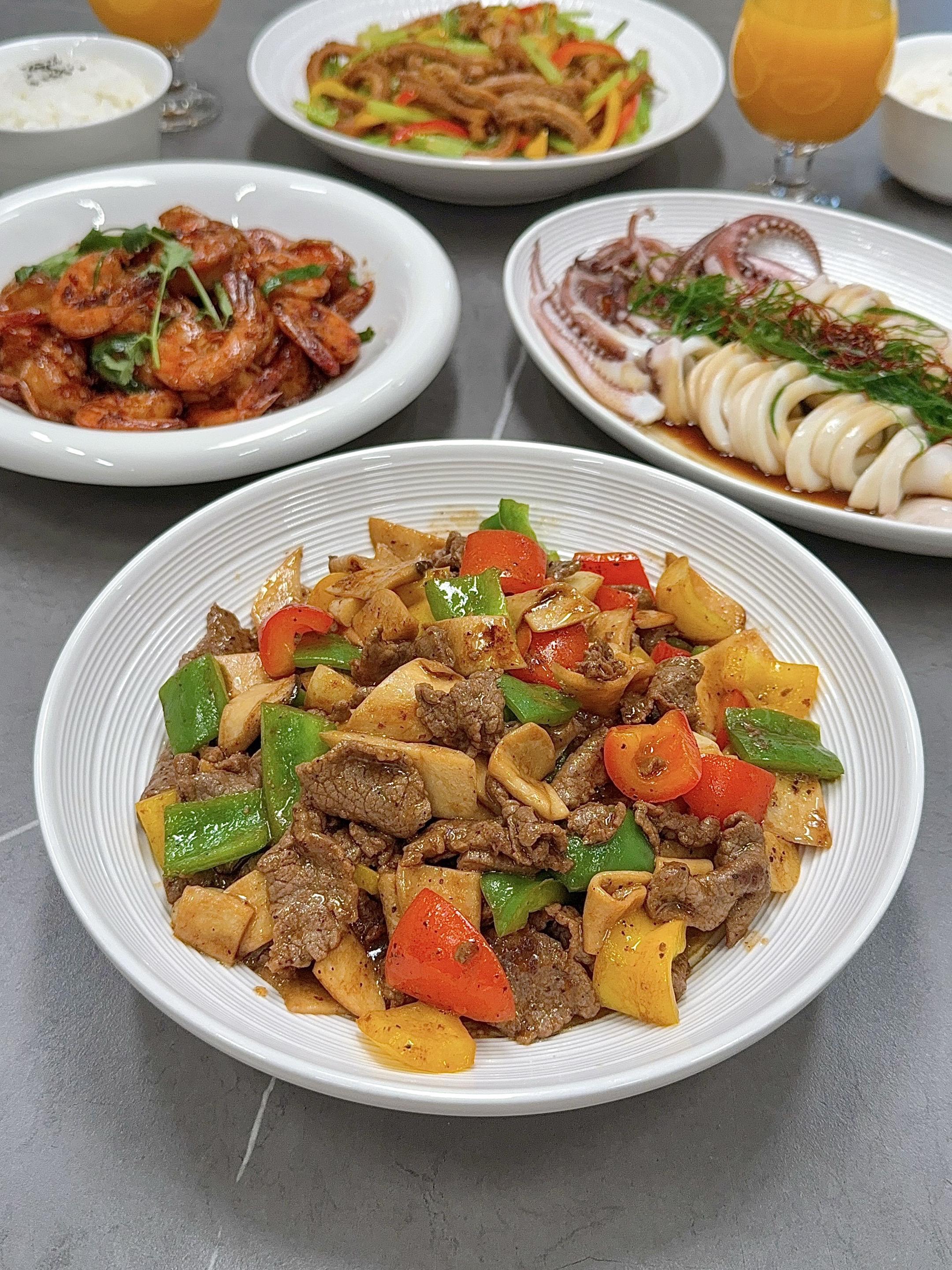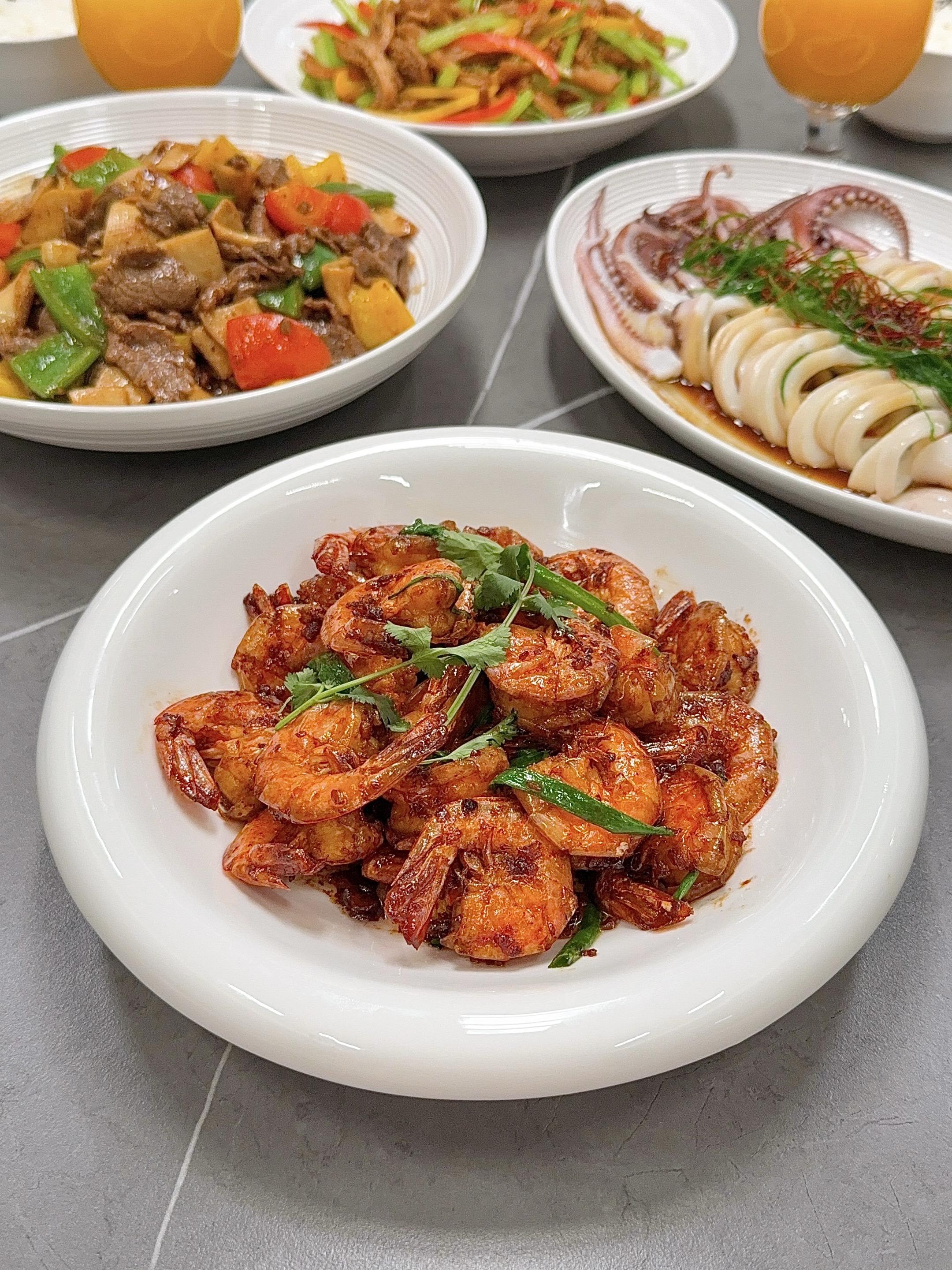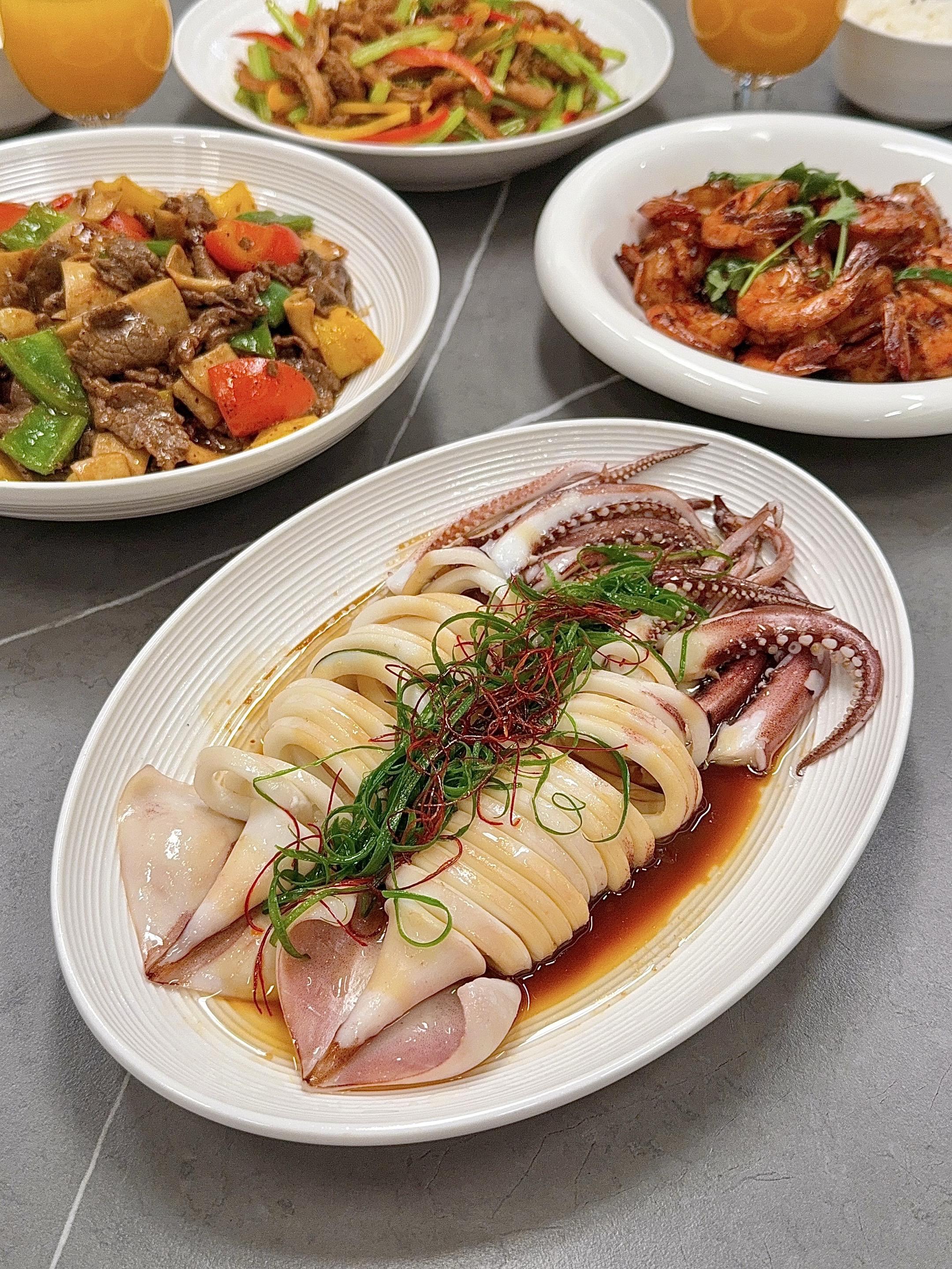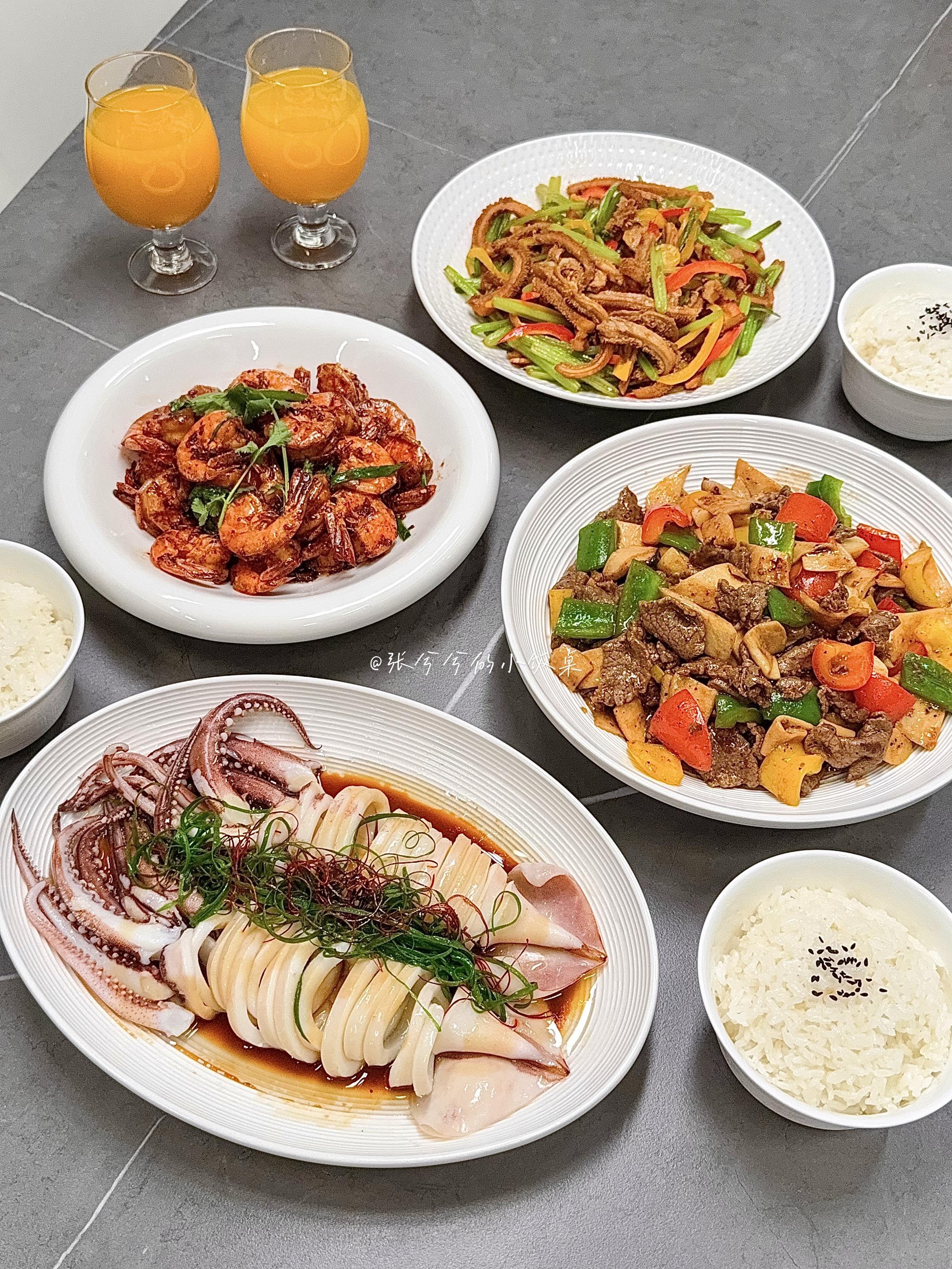 晚餐灵感|简单又好吃的家常快手菜。🌈今日晚餐分享: ❶【蒜蓉油爆虾】 ❷【黑椒杏鲍菇炒牛肉】 ❸【爆炒牛肚丝】 ❹【白灼鱿鱼】