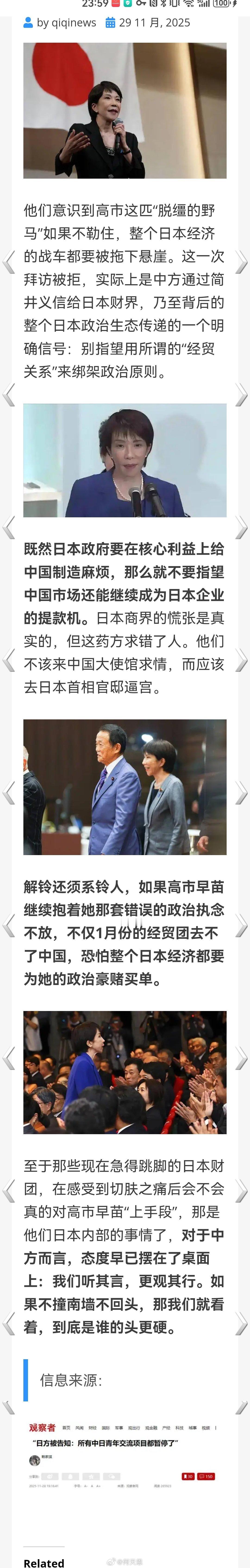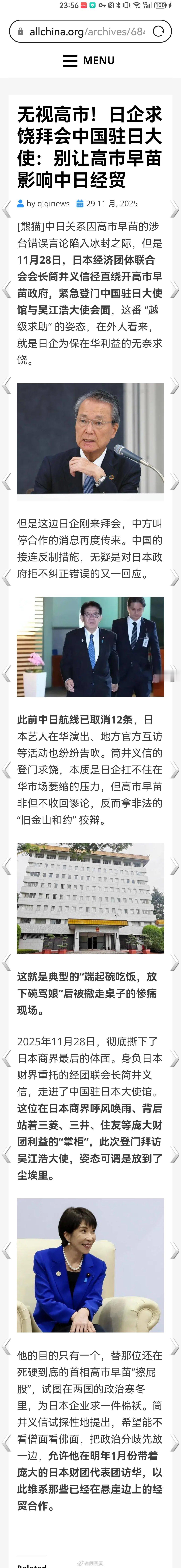 无视高市!日企求饶拜会中国驻日大使:别让高市早苗影响中日经贸。海外新鲜事何天恩中