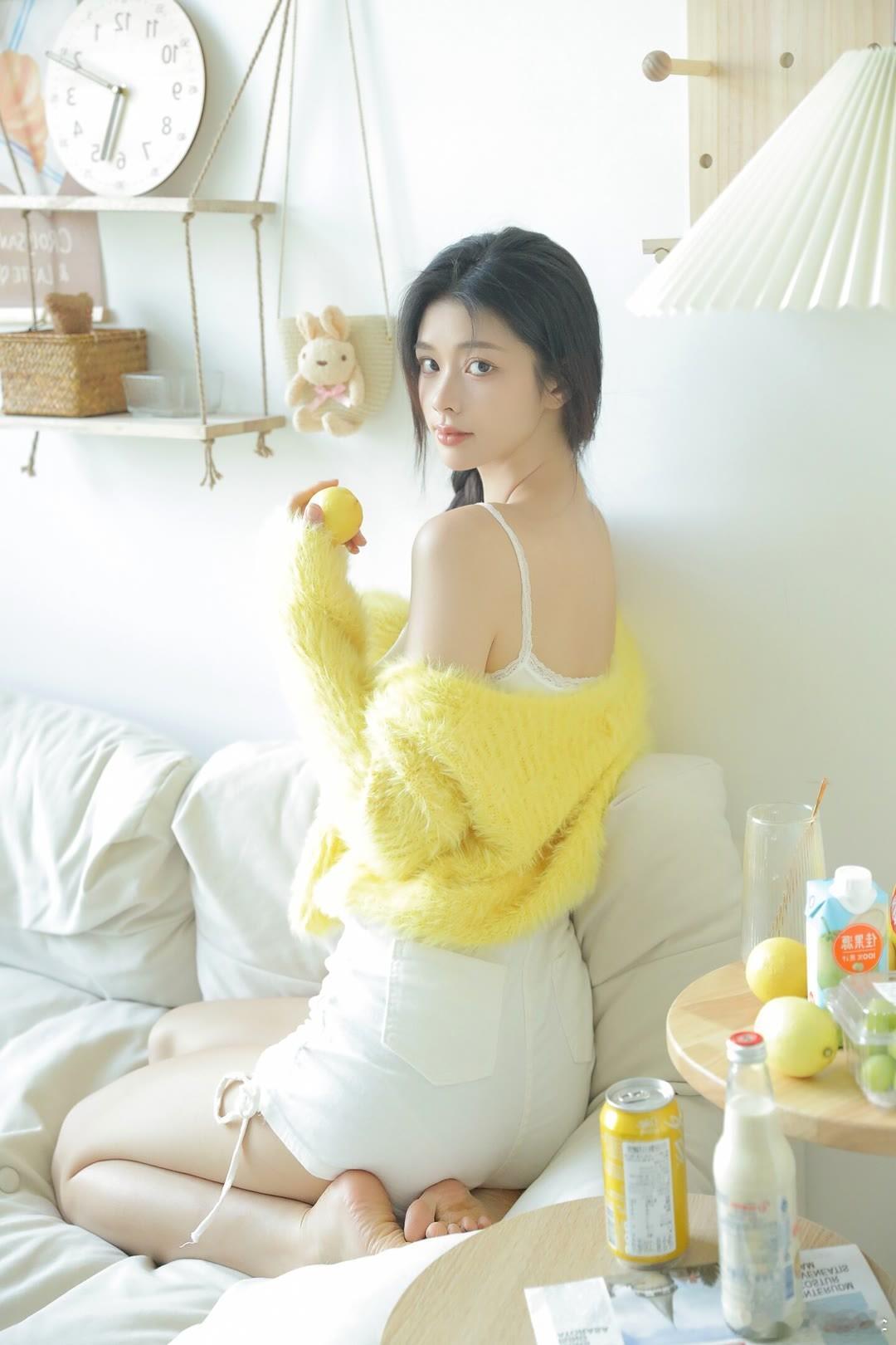 优雅气质少女,坐在现代简约风格的咖啡馆里,散发着温柔与自信。
