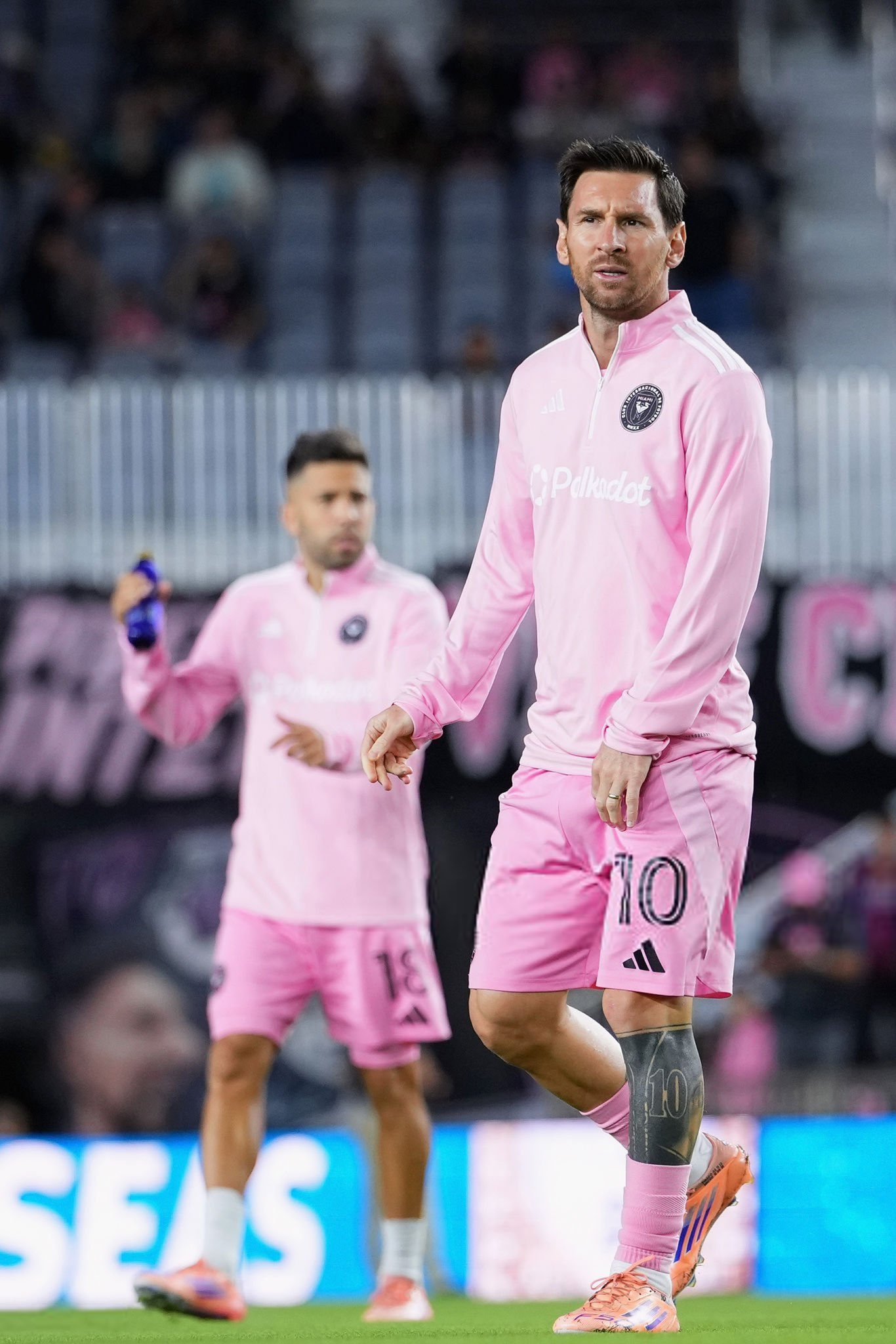 率领球队热身的梅西梅西迈阿密国际vs纽约城