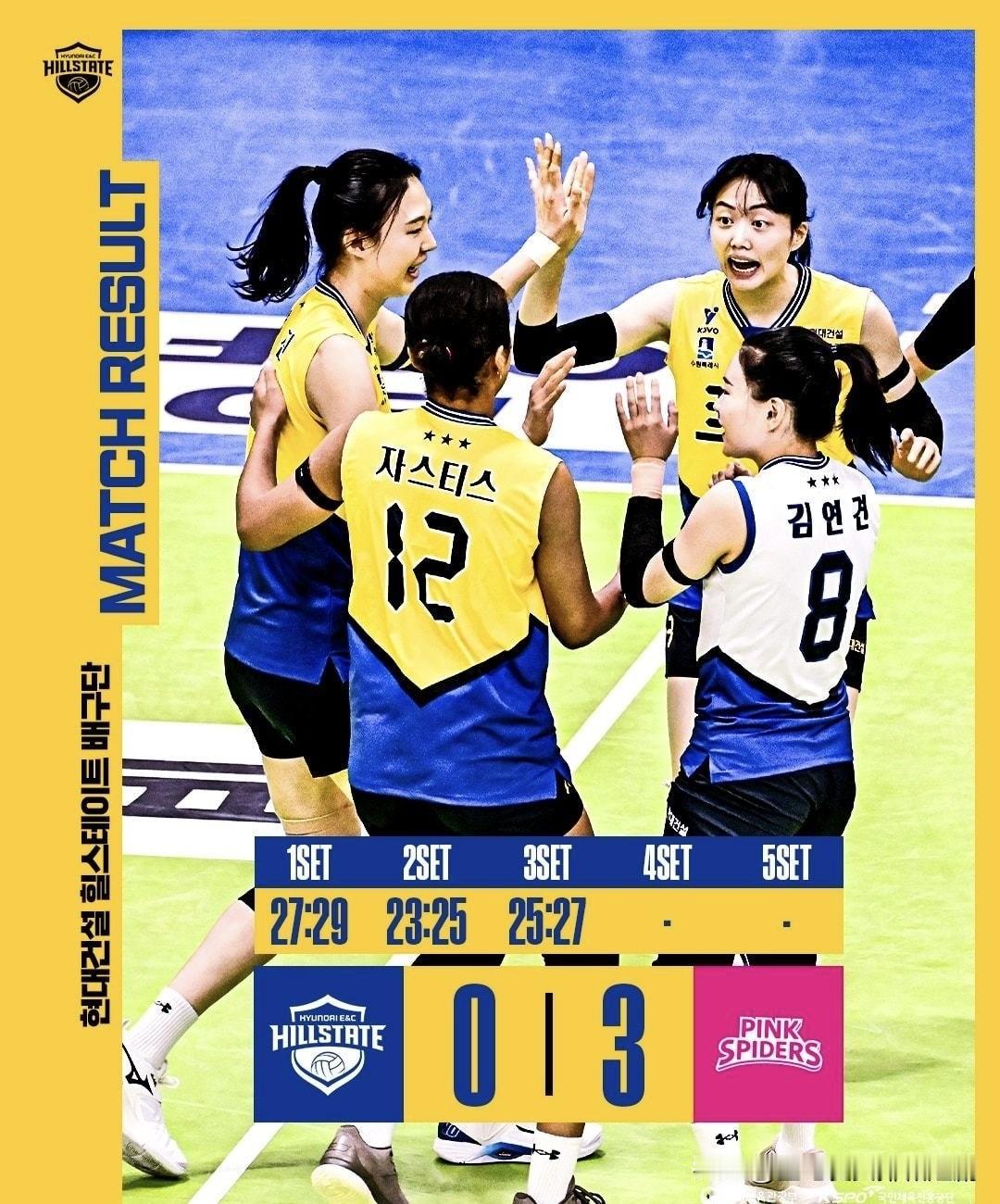 现代建设0-3(27-29/23-25/25-27)兴国生命保险 现代建设首局错过一个局点,进攻不错,但失误多了点;第二局又错失18-14的领先优势,第三局曾追至23平、24平、25平,功亏一篑,连输三局,不敌兴国生命保险。 现代建设无缘3连胜。目前现代建设5胜6负积17分,排名第二,但落后高速公路公社11分之多;兴国生命5胜6负积16分排名第5。此役上座率不错,3800人左右。瑞贝卡的男友亲临现场助阵。最后一个球,现代建设挑战过网,没成功,教练组成员不是很满意。 现代建设-兴国生命 进攻:55-53;拦网:5-5;发球:2-5;自失:18-13 卡里28分 49扣28中;郑智允12分 28扣12中;梁孝真10分 21扣8中2拦;金姬真7分,10扣5中2拦;李艺琳2分,贾斯蒂斯2分,金多仁1分 瑞贝卡28分 55扣27中1拦;金多恩12分,李多晛8分,菲茨8分,郑允珠3分,朴秀妍2分,徐彩贤2分