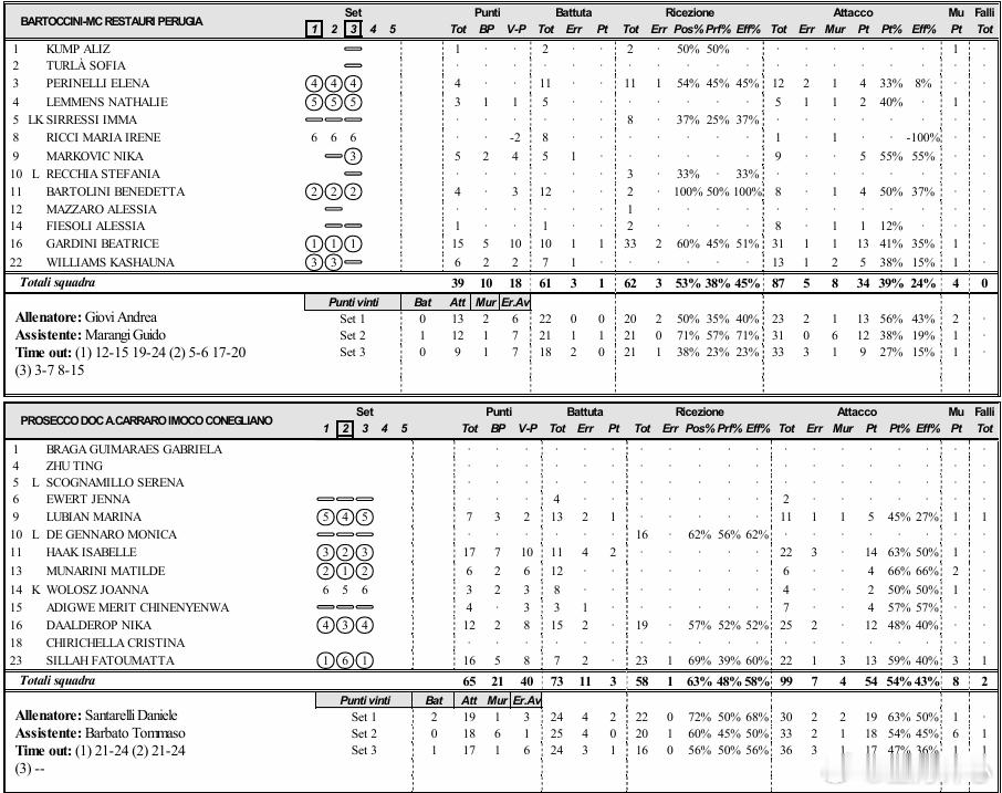【意甲12轮,科内客场3-0佩鲁贾,哈克MVP】朱婷留洋第七季 意甲女排联赛第12轮,科内利亚诺3-0佩鲁贾,朱婷和加比本轮轮休,尼卡搭档西拉首发,25-21/25-21/25-17;MVP哈克17分(22扣14中3失误1拦2发)西拉16分(22扣13中1失误3被拦3拦23一传1失误)尼卡12分(25扣12中2失误19一传)卢比安7分(11扣5中1失误1被拦1拦1发)穆纳里尼6分(6扣4中2拦)阿迪格维4分(7扣4中)沃沃什3分(4扣2中1拦)佩鲁贾球员得分贝奇思15分、威廉姆斯6分、马尔科维奇5分、佩里内里和巴托里尼各4分;世界女排新闻 科内继续13连胜排名榜首