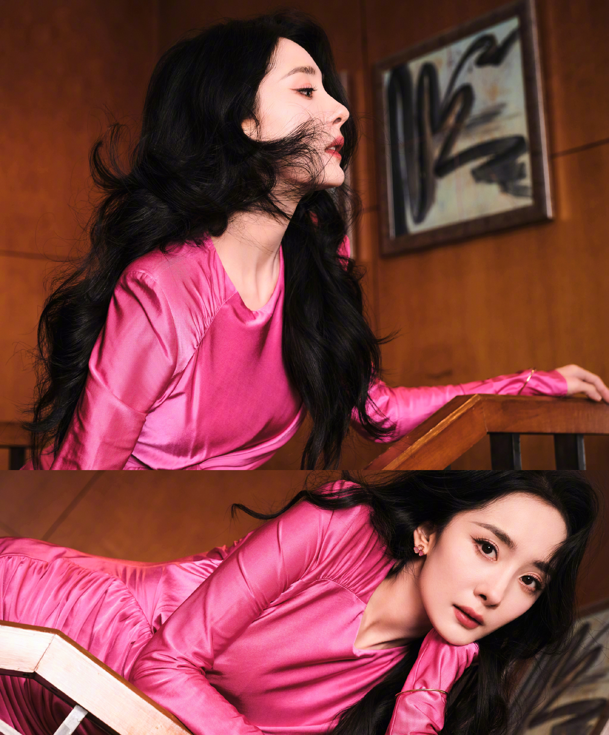 杨幂,婀娜姿态,玫瑰色彩美人