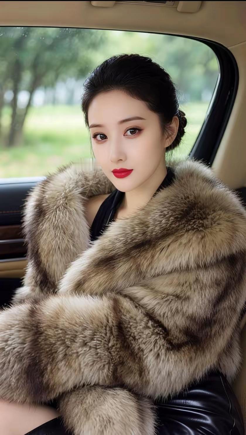奢华皮草外套,优雅气质,车中自拍,尽显时尚魅力!