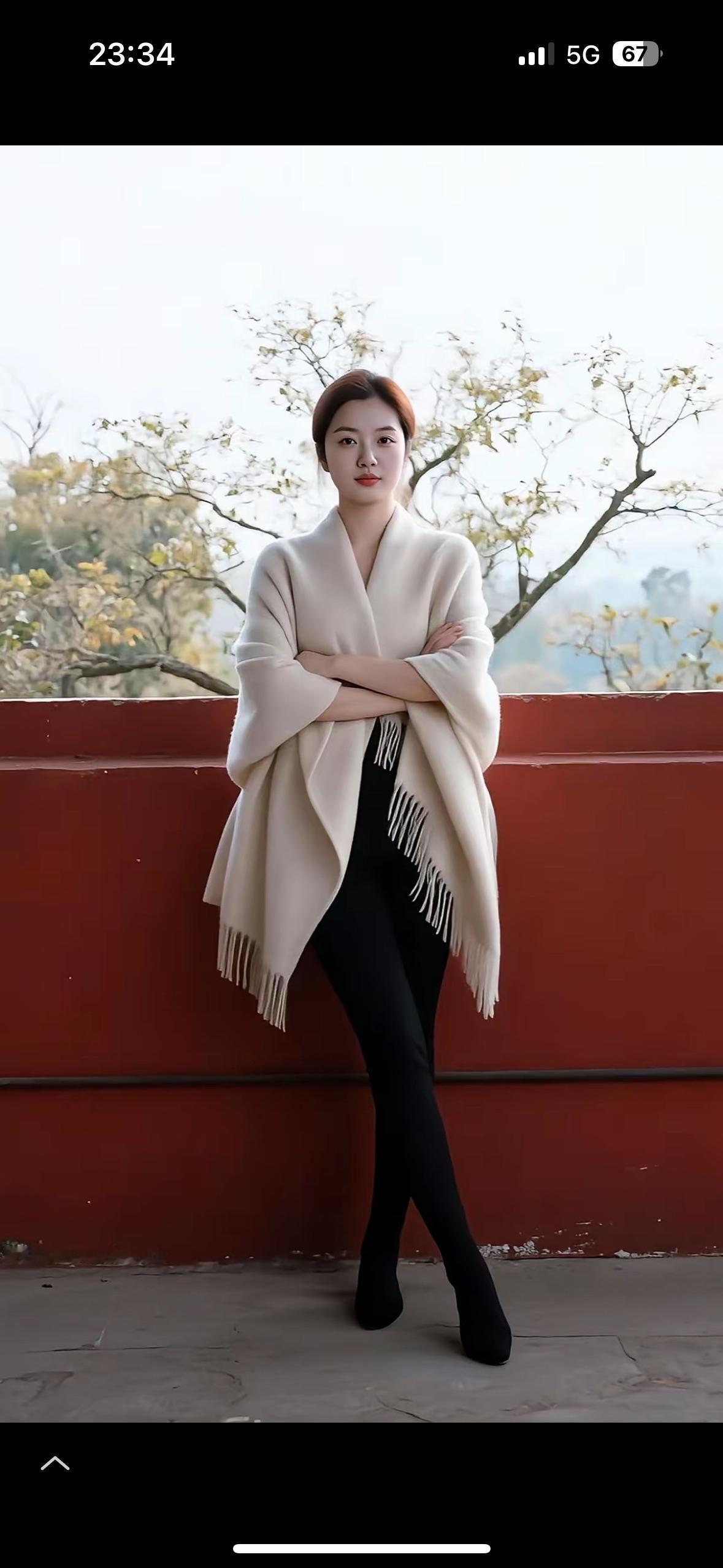 冬日暖阳下的优雅穿搭,米色围巾与黑色长靴的完美搭配,尽显时尚与温暖。