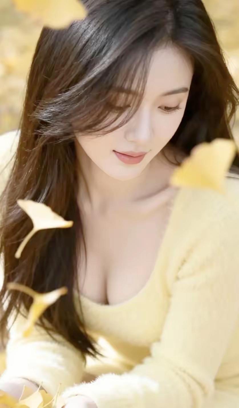 秋日暖阳下,少女轻抚落叶,唯美如画。