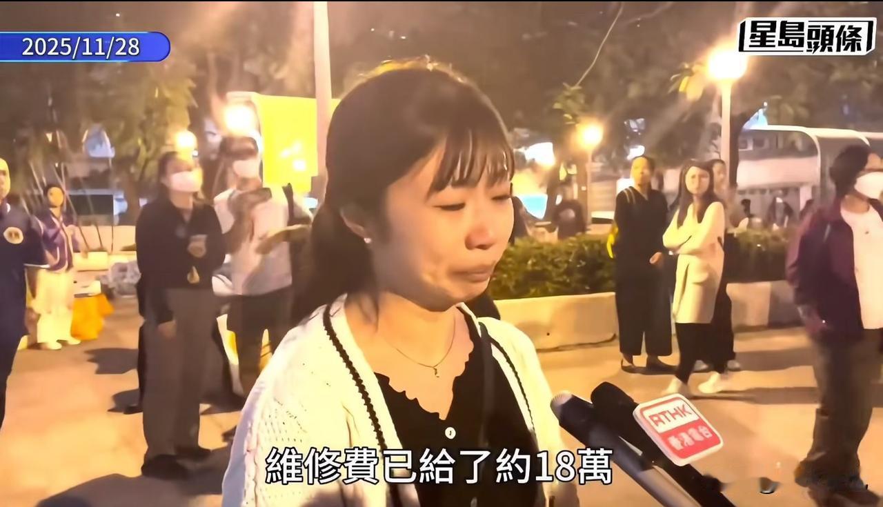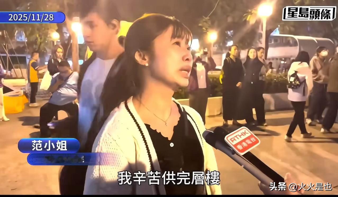 刷到一个香港火灾受害者家属的采访视频,心都快碎了。在视频里,这位妈妈强忍着巨大的悲痛,带着浓浓的绝望对着镜头说自己用尽了毕生积蓄去买了房子,好不容易供完,又说要给维修费,自己又给了18万,而自己是一个单亲妈妈,现在是什么都没有了。