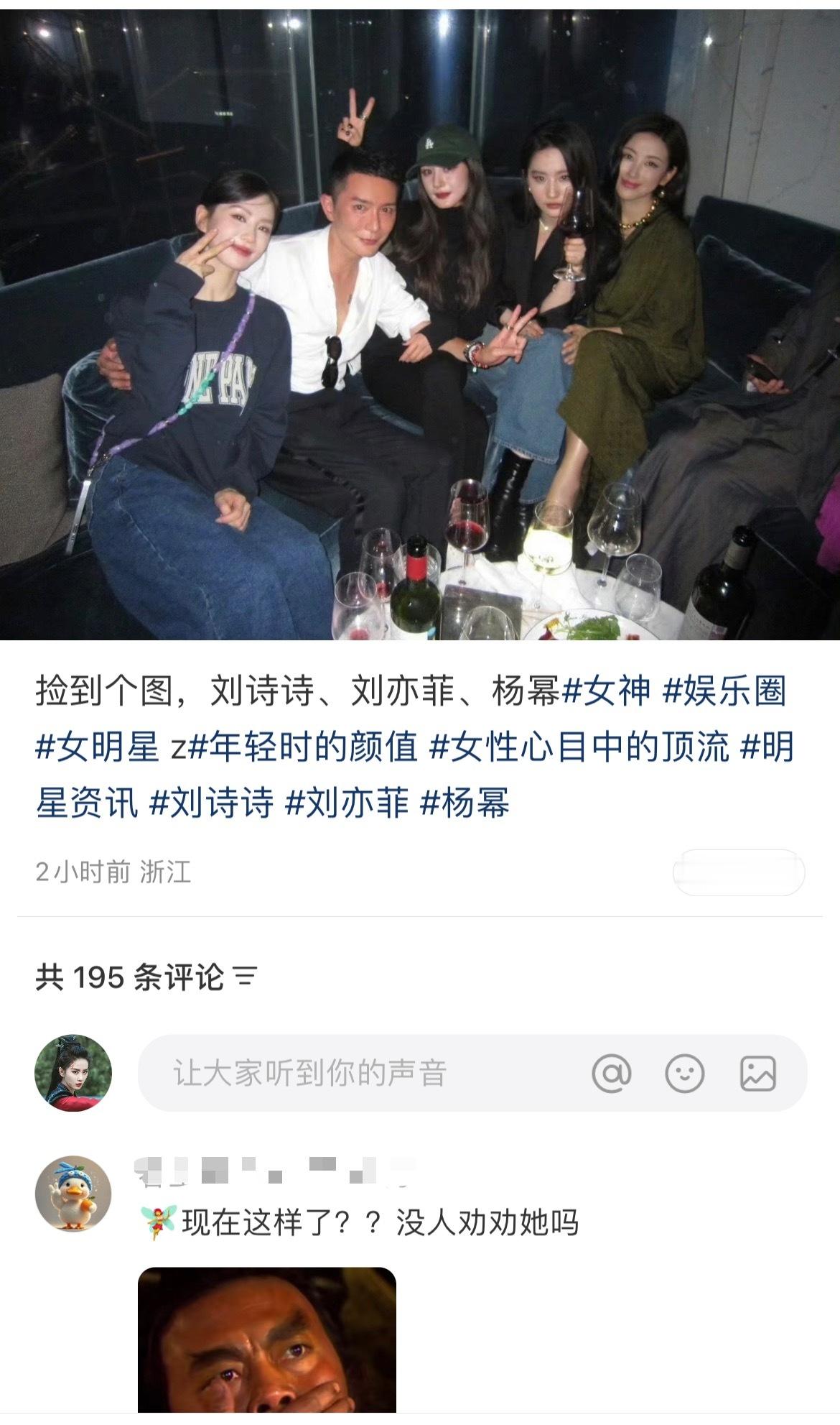 刘诗诗,主编,杨幂,刘亦菲,朱珠合影,网友评论都是夸刘诗诗的