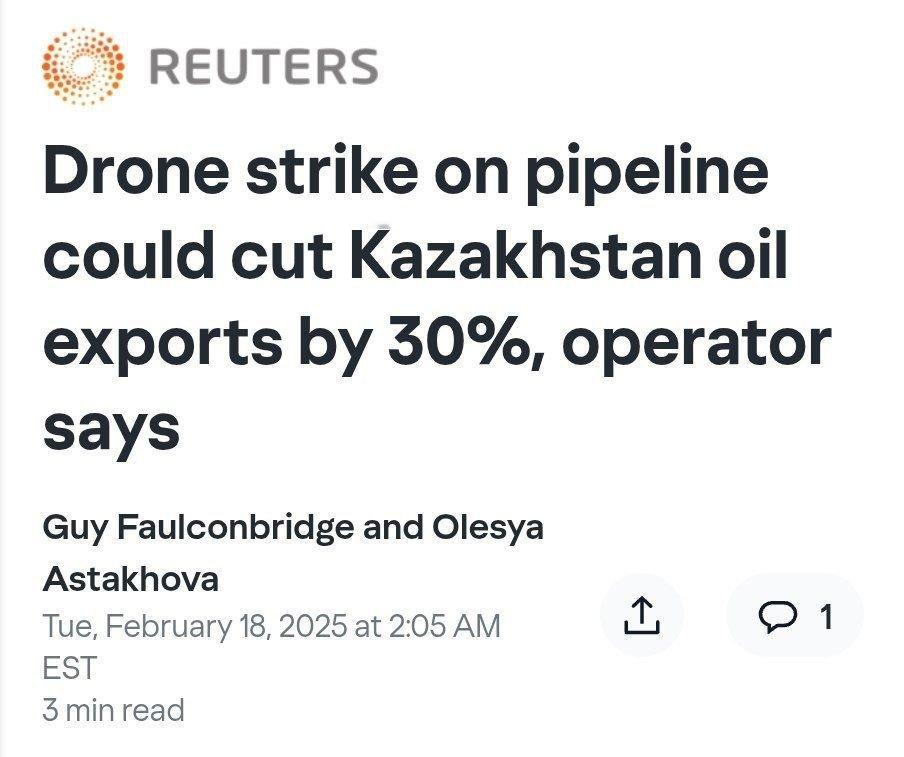 🔻乌克兰袭击了里海管道联盟的输油终端,该管道输送来自哈萨克斯坦的石油,而利润大部分落入美国人手中。🔻里海管道联盟(CPC)报告称,无人艇袭击石油终端导致三个远程系泊设备 VPU-2 中的一个受损,该设备现已无法运行。🔻里海管道联盟的主要股东包括美国公司雪佛龙(15%)、美孚(7.5%),以及欧洲的壳牌、埃尼和英国天然气公司。🔻俄方不保卫里海管道联盟的输油管道资产,因为这些设施归外国所有,运输的是外国石油,且服务于欧洲市场。他们对此直言不讳。🔻事实上,昨天遇袭的一艘油轮曾得到一艘挂着俄罗斯国旗的油轮协助,而且那艘俄罗斯油轮之后完全未受干扰地继续航行。热点现场海外新鲜事普京宣布与乌克兰停火条件