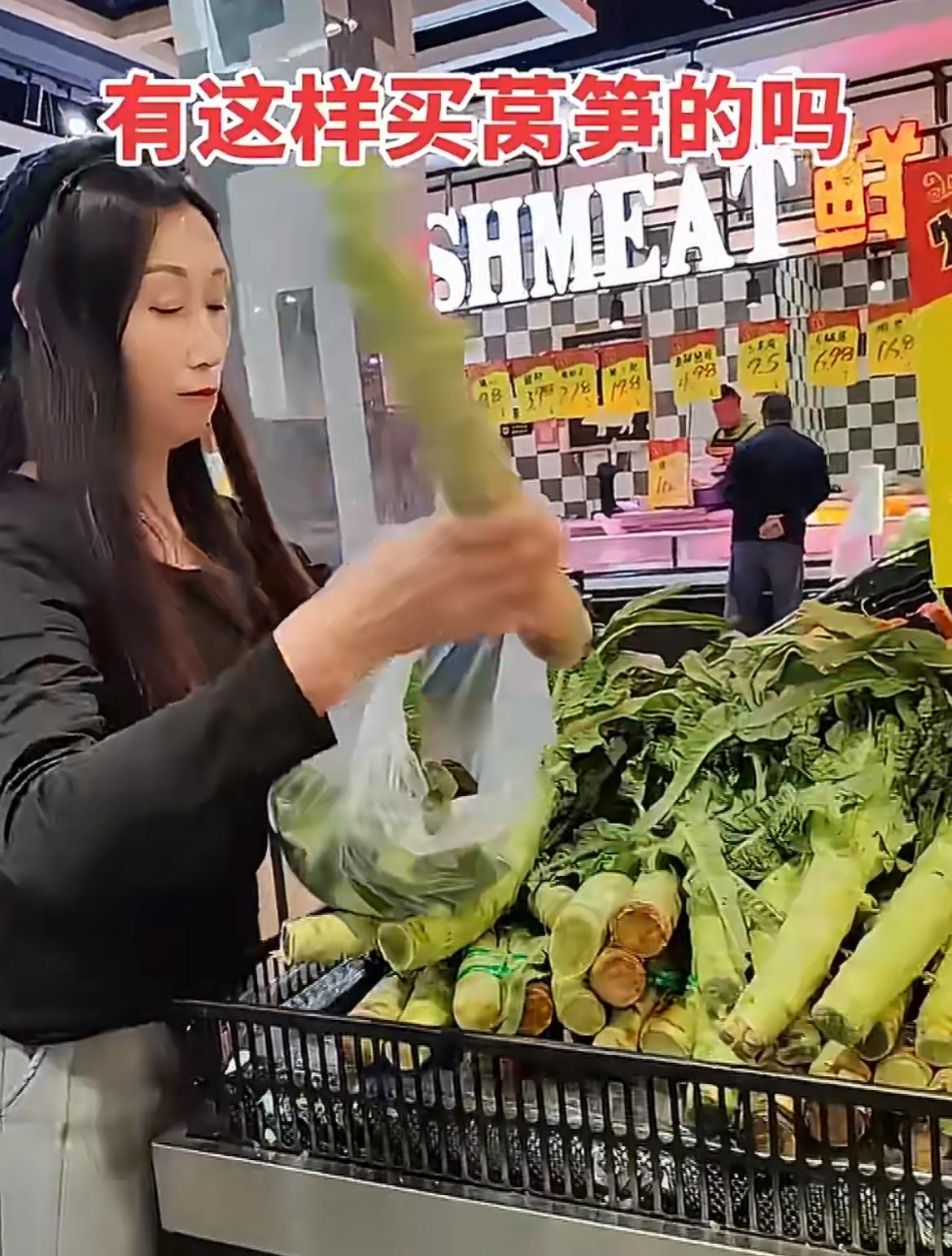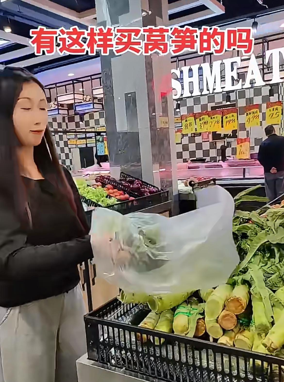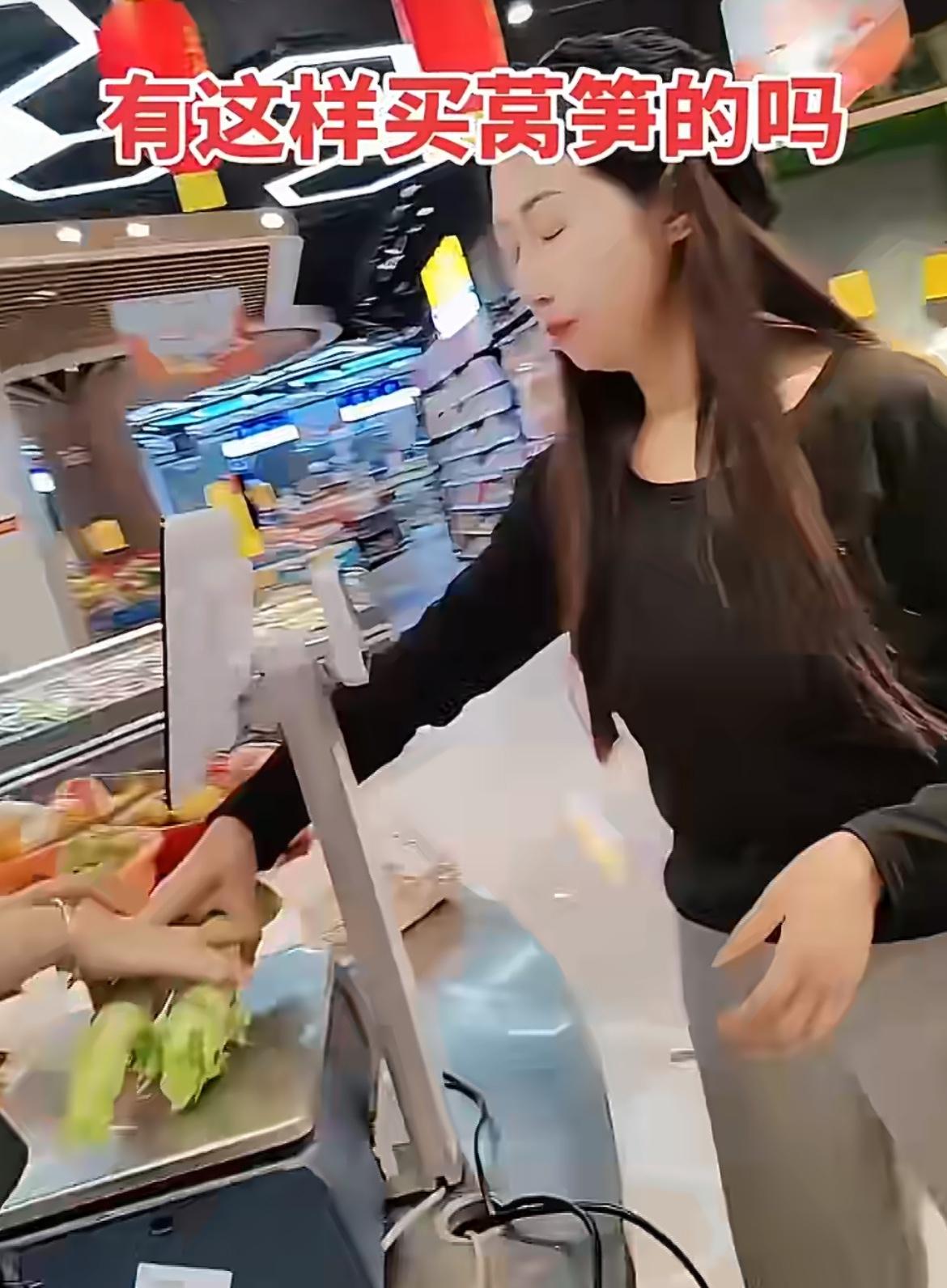 一靓女超市买莴笋撸光叶子,超市工人提醒,她反怼:关你什么事。就两棵莴笋,杆子上带了一点叶子,那一截打火锅的叫凤尾,其实挺好吃的,能占多少重量。女滴把两节光杆拿去打秤,另一个工人说叶子不要钱,女滴马上过去把叶子装起来,她不是嫌弃叶子,而是就想占便宜。