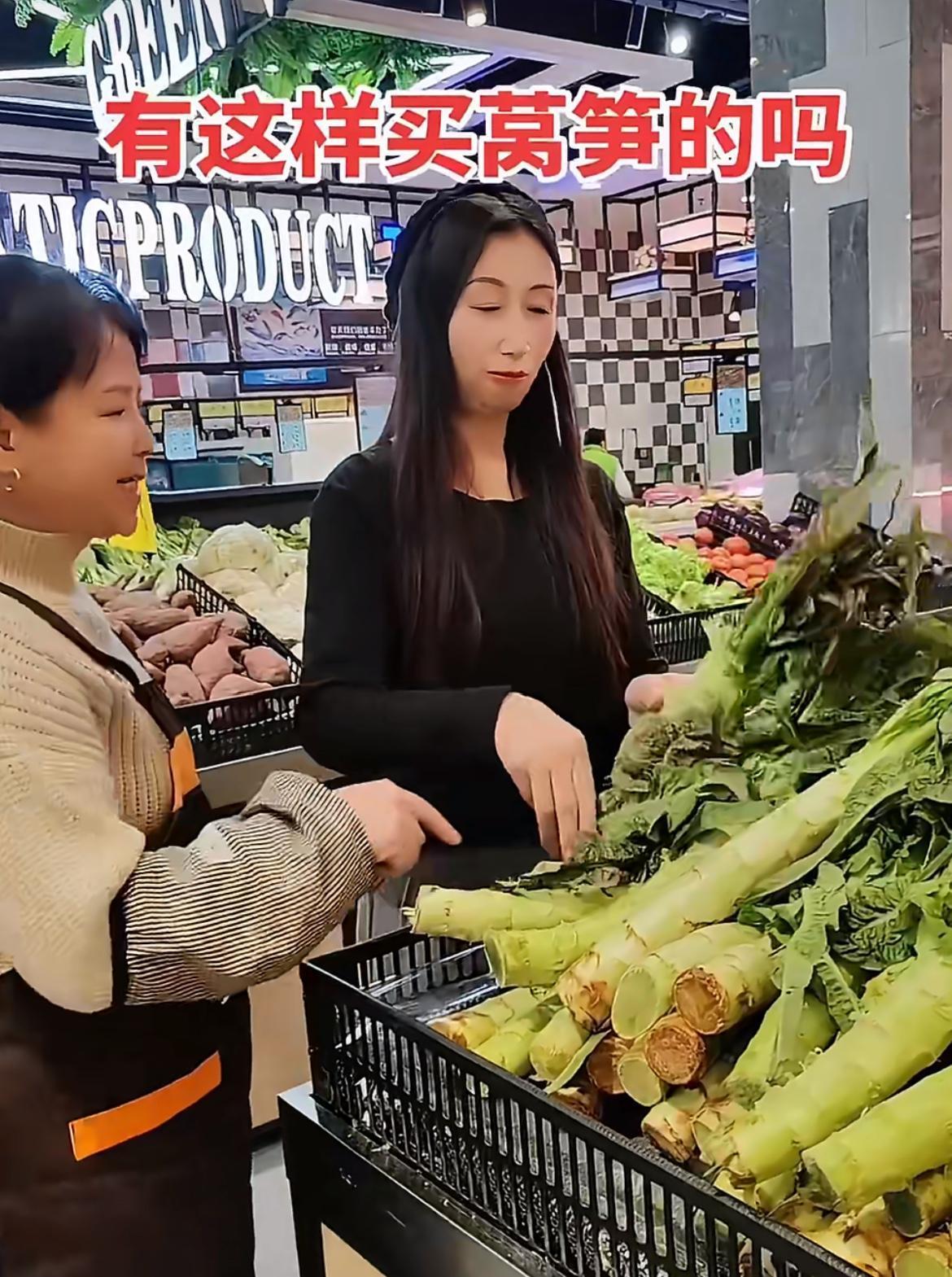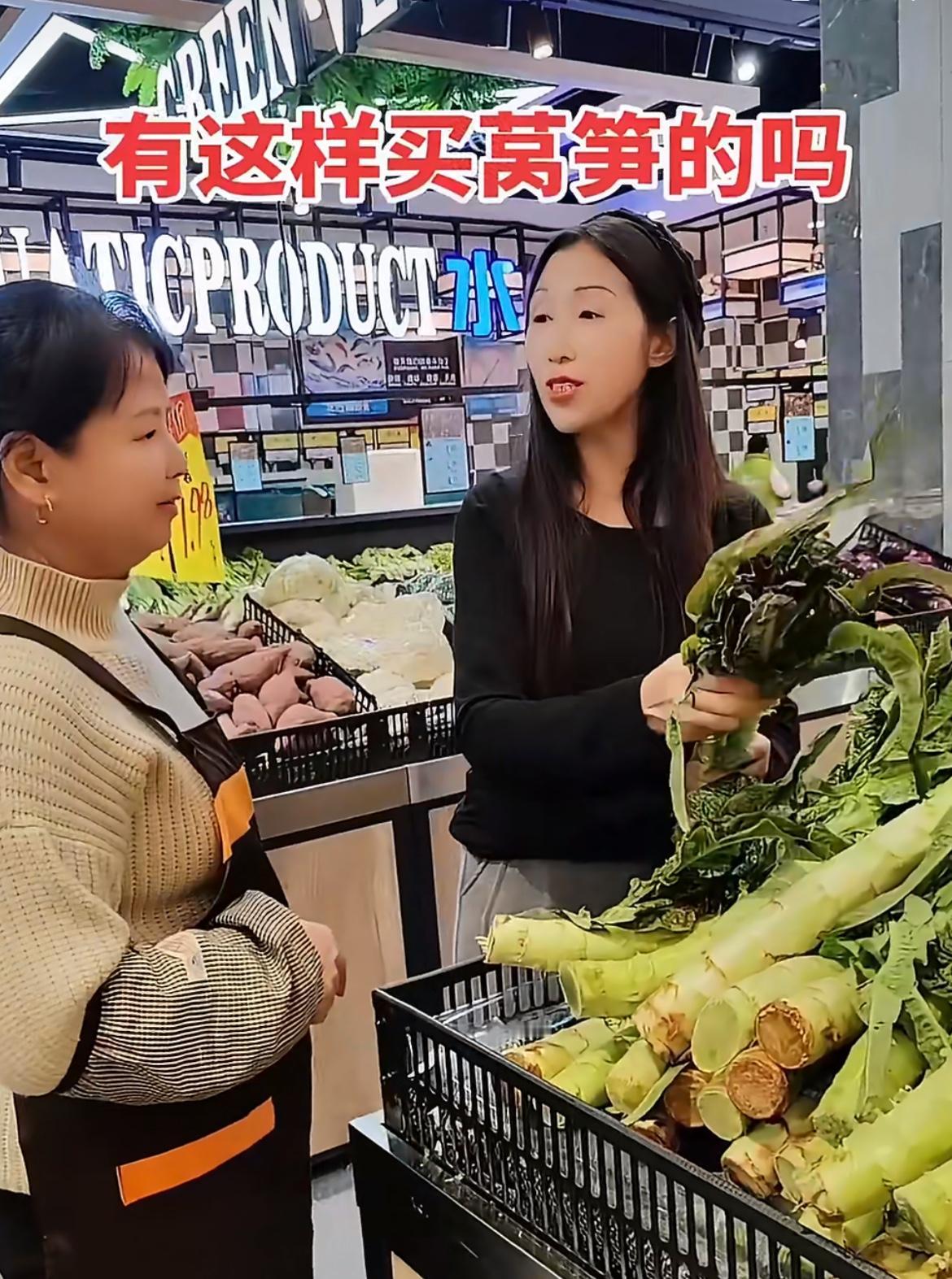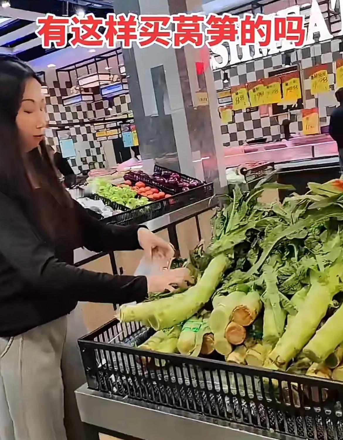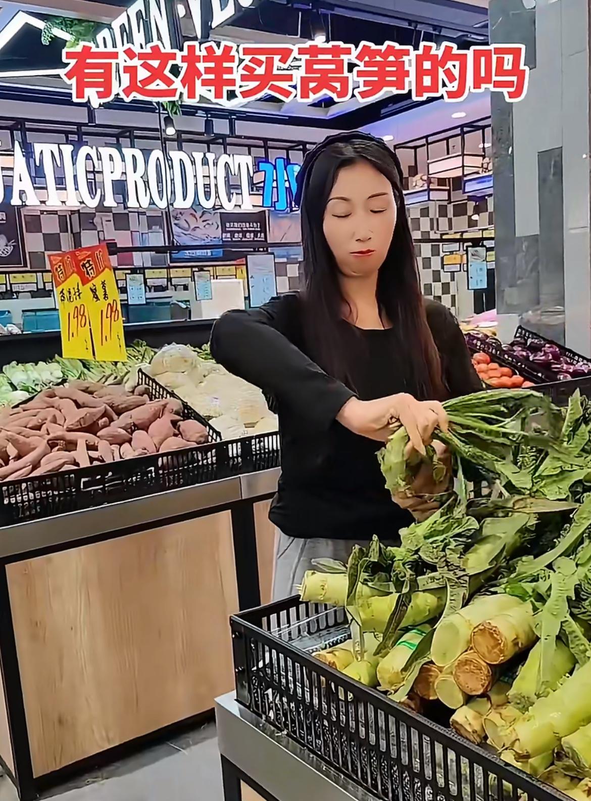 一靓女超市买莴笋撸光叶子,超市工人提醒,她反怼:关你什么事。就两棵莴笋,杆子上带了一点叶子,那一截打火锅的叫凤尾,其实挺好吃的,能占多少重量。女滴把两节光杆拿去打秤,另一个工人说叶子不要钱,女滴马上过去把叶子装起来,她不是嫌弃叶子,而是就想占便宜。