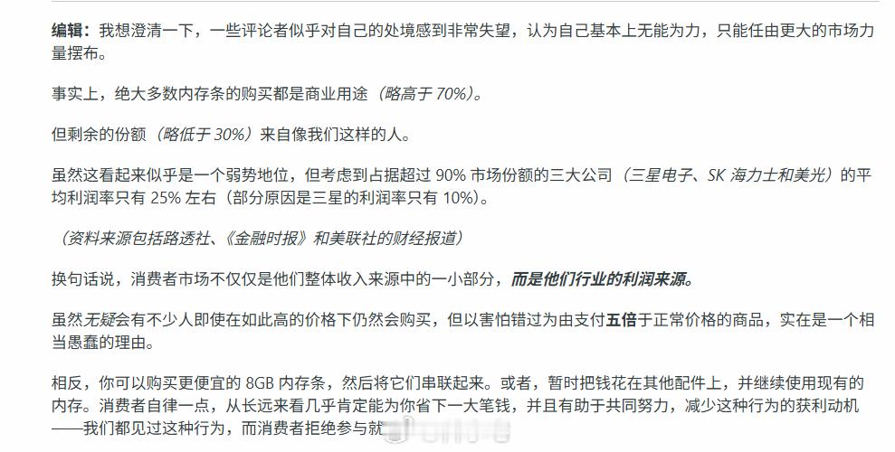 大批PC玩家公开抵制购买内存,这波涨价潮确实搞的大家都挺难的,希望能尽快解决吧