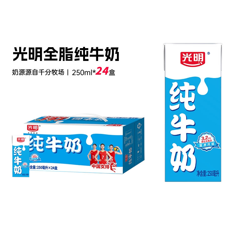 君且去,休回顾。光明纯牛奶250ml*24盒全脂纯奶礼盒装学生营养早餐奶