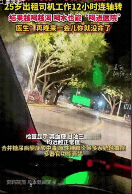 “有命挣,没命花!”福建,一位25岁出租车司机经常觉得口渴,开始他还没在意,可后面这种感觉越来越强烈,甚至一晚上要喝一箱矿泉水,持续一个月后身体到底出现了问题,送医后确诊多系统危重症。医生:再晚来可能没命。 小杨坐在自己的出租车里,空调开得最大,却依旧觉得汗水顺着脊背往下滑。车外是城市喧嚣,车里是狭小的空间和永不停歇的仪表盘滴答声。 25岁的他,身高一米六八,却有着扎实的两百斤体重。这样的身材,让他在上下车时总觉得腰腹有些吃力,但他从来不抱怨,因为他心里清楚:“有命挣,没命花。” 小杨的父母都是工人,从小家庭条件一般。小时候,他家里吃饭从来不挑食,能吃饱就算幸福。父母常说:“读书不如学一技之长,能赚钱才是硬道理。” 所以,小杨初中毕业后,没有继续上学,而是直接找了出租车司机的工作。起初,他只是兼职跑单,赚点零花钱。 可一旦上了路,他就停不下来了——每天十几个小时的工作,从早晨的日出到深夜的霓虹闪烁,他的车窗外是车流滚滚,车内是不断闪烁的仪表灯。 为了应付长时间的驾驶,他养成了一个习惯:手边必须有饮料。奶茶、甜饮料是他的首选。一杯接一杯下肚,甜味在口中迅速扩散,让疲惫似乎暂时消失。 然而,这也让小杨开始频繁口渴。起初,他只是觉得渴了就喝水,但慢慢地,这种口渴变得越来越严重。白天喝水还好,晚上就不行了——有时候一晚上,他能喝掉整整一箱矿泉水。 “是不是天气热啊?”小杨曾对自己安慰过。他也试着减少甜饮料,可习惯一旦养成,就像车轮上的惯性,很难停下来。 他开始觉得身体出现一些异常:眼皮偶尔浮肿,精力越来越差,夜里总是醒来口干舌燥。 有时候开车到半夜,他会猛然发现自己手指有些麻木,心跳也加快,但忙着接单的他从没多想,总觉得“没事,熬一熬就过去了。” 然而,问题越来越严重。一个周末,小杨在接送完最后一单回到家时,浑身无力地倒在沙发上。 母亲看着他脸色蜡黄,眼睛周围发青,忍不住担心地问:“小杨,你到底怎么了?是不是累坏了?” 小杨摇摇头,只说自己可能是累着了。可连续几个晚上,他甚至连翻身都费劲。 直到有一天晚上,他坐在车里接单时,突然感到头晕目眩,心脏像要跳出胸口,口渴异常且剧烈,手脚开始抽筋,汗水顺着背脊流下来,湿透了衣服。 他赶紧停在路边,拿出手机想叫救护车,可手却颤抖得连号码都拨不准。旁边一位好心的乘客发现异常,立刻帮他打了120。 送到医院后,小杨才第一次被医生认真检查。 各种化验结果让他心中一紧——血糖极高,肾功能严重异常,肝脏和心脏也都出现了不同程度的损伤。医生面色凝重地说:“你这是多系统危重症,如果再晚来几天,后果不堪设想。” 小杨在病床上躺了三天,身体仍然虚弱,整个人像泄了气的皮球。病房外,父母默默守在旁边,手里攥着他的衣服,眼神中满是心疼与无奈。 父亲轻轻拍了拍他的肩膀:“儿子啊,挣钱重要,可命更重要啊。”母亲低声说:“以后再辛苦,也要照顾好自己,身体才是革命的本钱。” 小杨回想过去这几年的生活,心里有一种说不出的苦涩和悔意。 他想起每天在车里辛苦坐着,开单到凌晨,喝下的甜饮料和矿泉水,忽略的早晨早餐,错过的午休和健康检查——这一切都是为了多挣一点钱,却差点丢了性命。 出院后,他的生活彻底改变。小杨开始严格控制饮食,减少甜饮料和高热量食品,每天按时测血压、血糖,甚至加入了社区的健身小组,学习简单的运动和健康饮食知识。 每当他坐在出租车里,面对外面的车流时,他总会提醒自己:“挣钱没错,但身体才是最大的本钱。” 小杨的故事在网络上传开后,引起了许多年轻人的共鸣。有人留言说:“我每天加班到深夜,也有点小杨那种情况,看到他,我终于意识到身体真的不能忽视。” 有人说:“挣钱是为了生活,不是为了折磨自己。”也有人感慨:“健康这件事,看似不起眼,其实一旦失去,所有努力都白费了。”