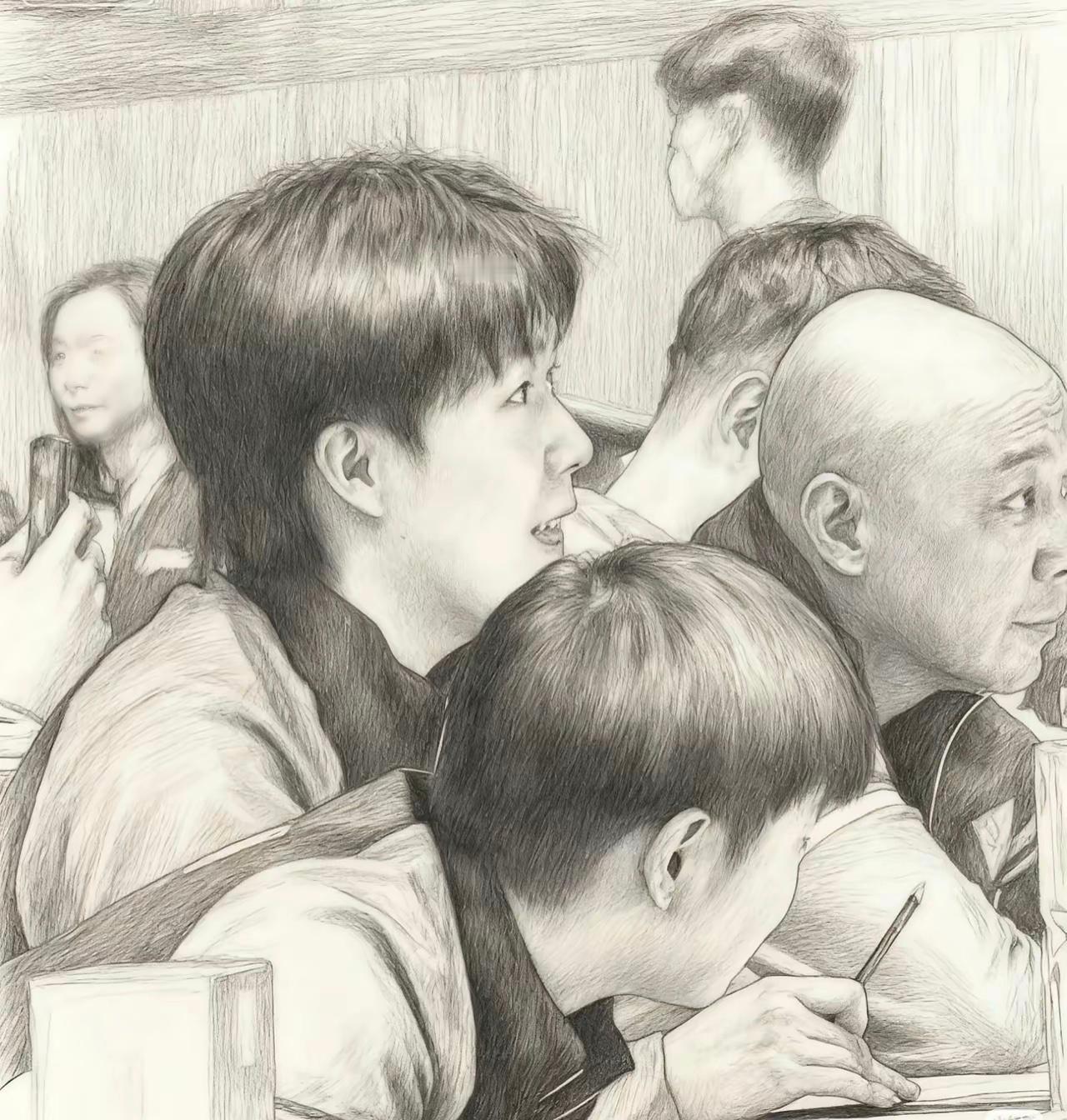 太有才了,画的惟妙惟肖,关键还这么快,刚刚结束的抽签仪式,这就出来了。要不说,高手在民间呢。爷仨太逼真了,头发丝都很逼真。特别是图一莎莎,神态五官太形象了。头哥的后脑勺尺寸也恰到好处,显得头不大,但又绝对是头哥特有的。