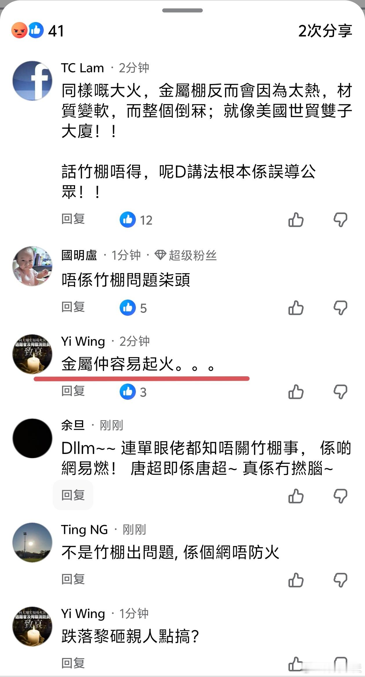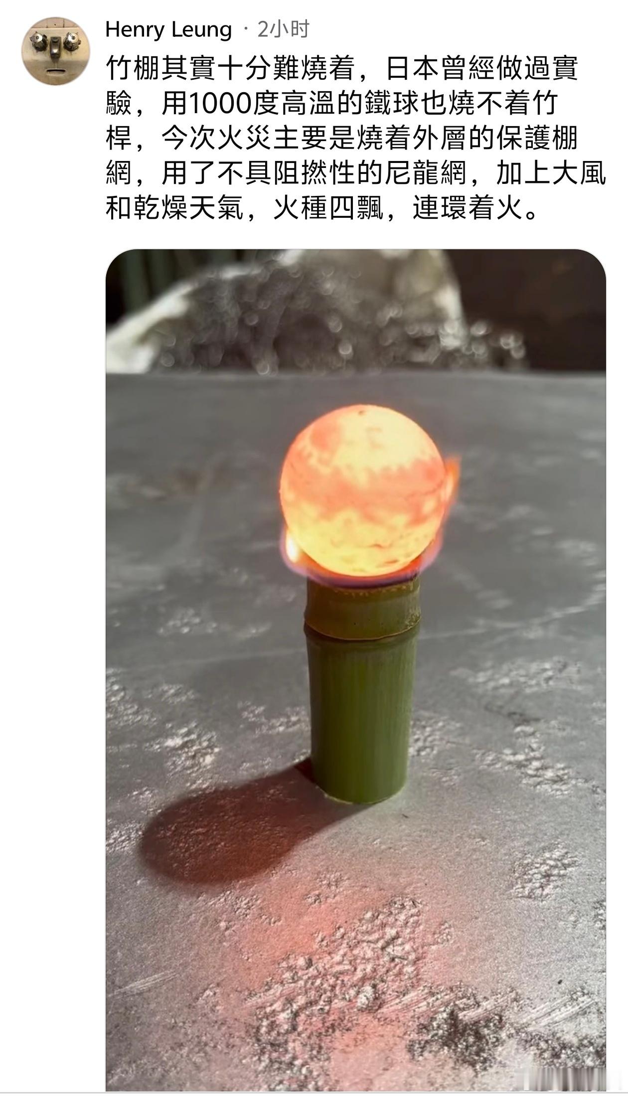内地网友意外用“竹子”,把反中乱港逼到墙角中央驻港国安公署昨天已经明确,有反中乱港分子破坏攻击救援工作,港警国安处也拘捕一名乱港分子。中央和港警信息情报肯定比咱们网民多,拿出拖鞋立刻打到曱甴。火灾能发生,必定是有消防问题,内地网友指出竹棚是其中一个因素。如果乱港派先抓住竹棚问题,还真更难缠,毕竟十几年前就有议员提出竹棚问题,竹棚工会也确实是利益团体,搭竹棚技术源自内地,英美日这样国家也不用竹棚。到时候什么官商勾结,保护利益团体,落后技术,阻碍国际化的大帽子,一套一套就来了,而且听起来还挺有道理。但是,因为反中乱港非要和内地对着干,你说竹子易燃,我就必须说竹子不可燃,违反物理常识我也不管,大量视频图片我也不管,竹子不止不能烧,还能扛原子弹!即使是胡搅蛮缠,竟然也让不少港人相信了,甚至包括不少香港名人,连甄子丹老婆这个加拿大人也来凑热闹。但毕竟科学摆在那,竹子能不能烧,不止内地网民知道,BBC、纽约时报这些欧美媒体,甚至台湾最绿几家,如三立新闻,也不得不出来科普竹子可燃,欧美用金属架,竹筒饭没燃烧原理等。看着乱港们犯傻,这些媒体可不傻,不想跟。这就让乱港派这次行动很被动,他们咬住竹子不可燃问题,一下被背后势力孤立了,只能自己在那跳,被逼到墙角,一次借灾闹事虽然现在还在持续,但是明显已经不行了。这事很深刻的告诉乱港派们,基础科学知识必须要学啊!广东支援香港多套救援装备腾讯捐赠1000万港元驰援香港