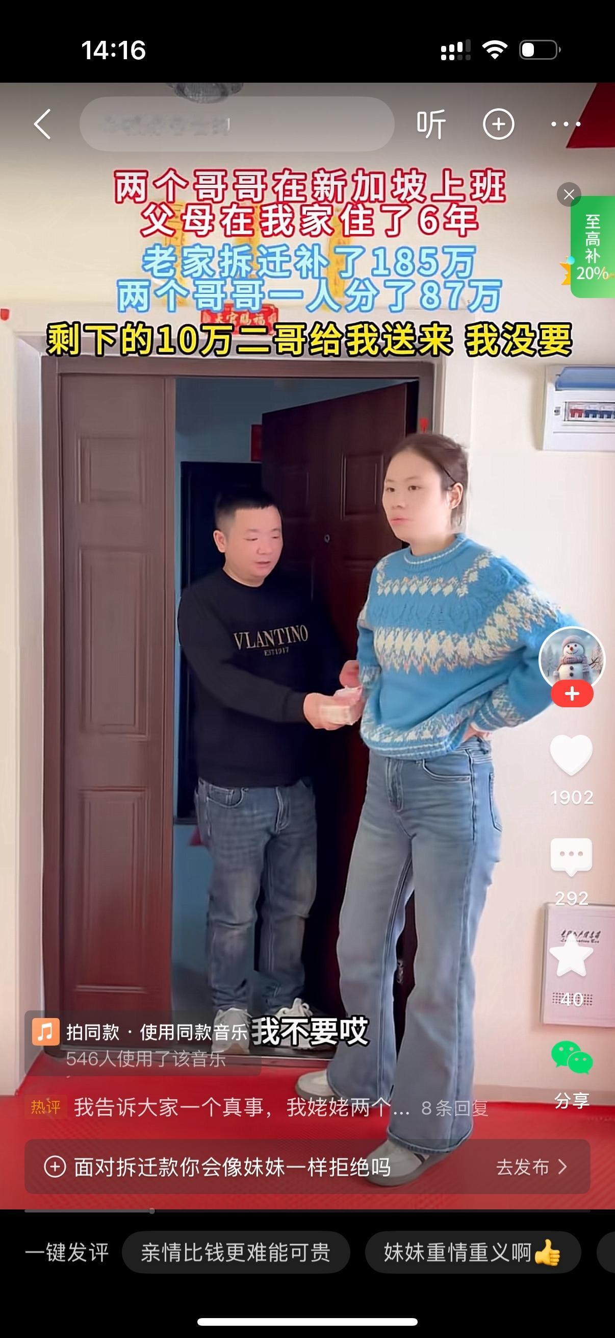 两个哥哥在新加坡上班,父母在妹妹家住了6年。老家拆迁补了185万,两个哥哥一人分了87万,剩下的10万二哥给妹妹送过去,她坚决不要。她对二哥说,我不要钱,你们只要把爸妈接回去就行了。二哥生气地说,你什么意思?嫌少吗?10万块让爸妈住你家6年足够了。你有什么不满意的?作为女儿就不要想着分家里的拆迁款,给你是情分,不给你是本分。妹妹没想到二哥会说这样的话,直接怒吼,好,我是嫁出去的女儿,泼出去的水,以后咱们不要来往了。你走吧,把爸妈一块带走,立刻马上。父母听到女儿赶自己走,也来了气,直接拿上10万块钱跟二哥离开了。女儿落得个人财两空。