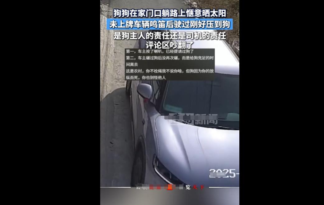 2025 年 11 月 27 日,浙江一司机遇狗躺路中睡觉,鸣笛无效后未绕行或驱赶,选择低速碾轧通过,视频传播后引发热议。 网友分为两派,一方指责司机有避让空间却恶意碾压,另一方称其或因盲区、防犬攻击考量,且狗主未拴绳为主责。 事件演变为标签化骂战,核心是规则缺失下的责任转嫁。 这事儿简直是 “马路版罗生门”! 狗躺路中当 “睡神”,司机鸣笛叫不动直接碾压,网友瞬间分成 “爱狗派” 和 “护驾派”,吵得比过年放鞭炮还热闹。 其实纠结司机 “坏不坏” 没啥用,关键是狗主没拴绳先 “开摆”,把马路当自家狗窝,按法律说本就该担主要责任; 司机也没选绕行、报警这些稳妥招,偏走最具争议的路。农村散养犬问题早该管管,基层治理别再 “睁一只眼闭一只眼”。 与其互相诅咒骂战,不如盼着司法明确裁判标准,狗主拴好绳、司机多份耐心,用规则兜底,总比靠舆论 “审判” 靠谱,也能少点这种闹心的马路纠纷!