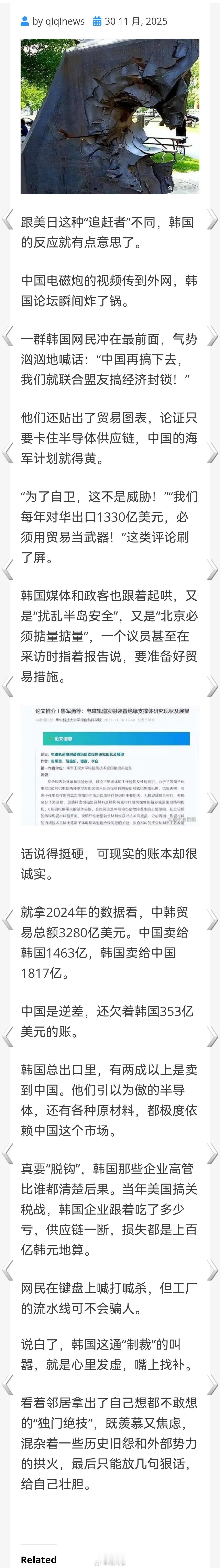 外网看电磁炮,韩国人:如果中国敢搞电磁炮,我们就制裁你们!中国驻日本大使发声海外新鲜事何天恩