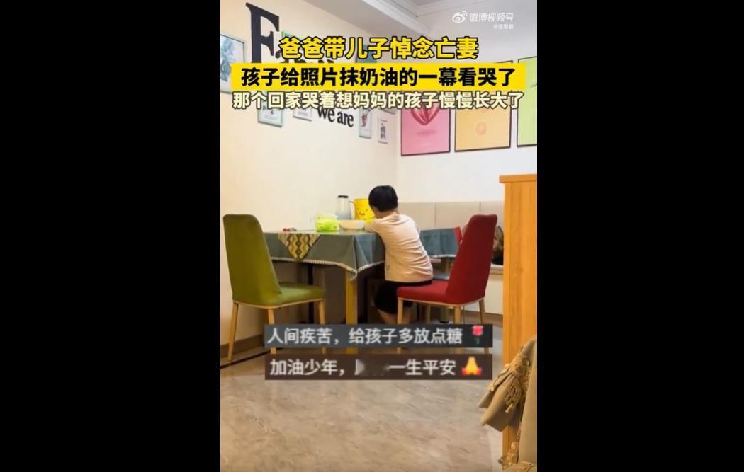 2025 年 11 月 26 日深夜,广东佛山的曾先生因工作繁忙,选择此时为亡妻准备鲜花和蛋糕,与年幼儿子共唱生日歌纪念。 孩子下意识用手指蘸奶油,小心翼翼抹在母亲遗像 “嘴角”,想让妈妈尝甜味,曾先生随后也将奶油轻抹孩子脸上,两人在烛光中相视而笑。 曾先生坚持用仪式感让孩子铭记母亲,这一行为被赞为 “最温暖的死亡教育”,儿童心理学家称其是健康哀伤的表达。 这波深夜纪念直接戳中泪点又暖到心窝! 别人告别是哭哭啼啼,曾先生一家偏用 “奶油互动” 解锁思念新姿势,孩子把遗像当妈妈分享甜味,爸爸用抹奶油拉近距离,妥妥的 “治愈系纪念天花板”。 比起藏起悲伤假装坚强,这种仪式感才是对抗离别最温柔的招。 既没让孩子忘记妈妈,还传递了 “爱能跨生死” 的信念,比空洞说教管用一百倍。 苏轼 “十年生死两茫茫” 的思念太沉重,曾先生却把思念熬成了甜,让逝者以爱的形式留在身边。 这也提醒大家,告别不一定是遗憾,把思念变成彼此温暖的勇气,才是对亲人最好的纪念。 生活再忙,也别丢了这份藏着爱的仪式感呀!