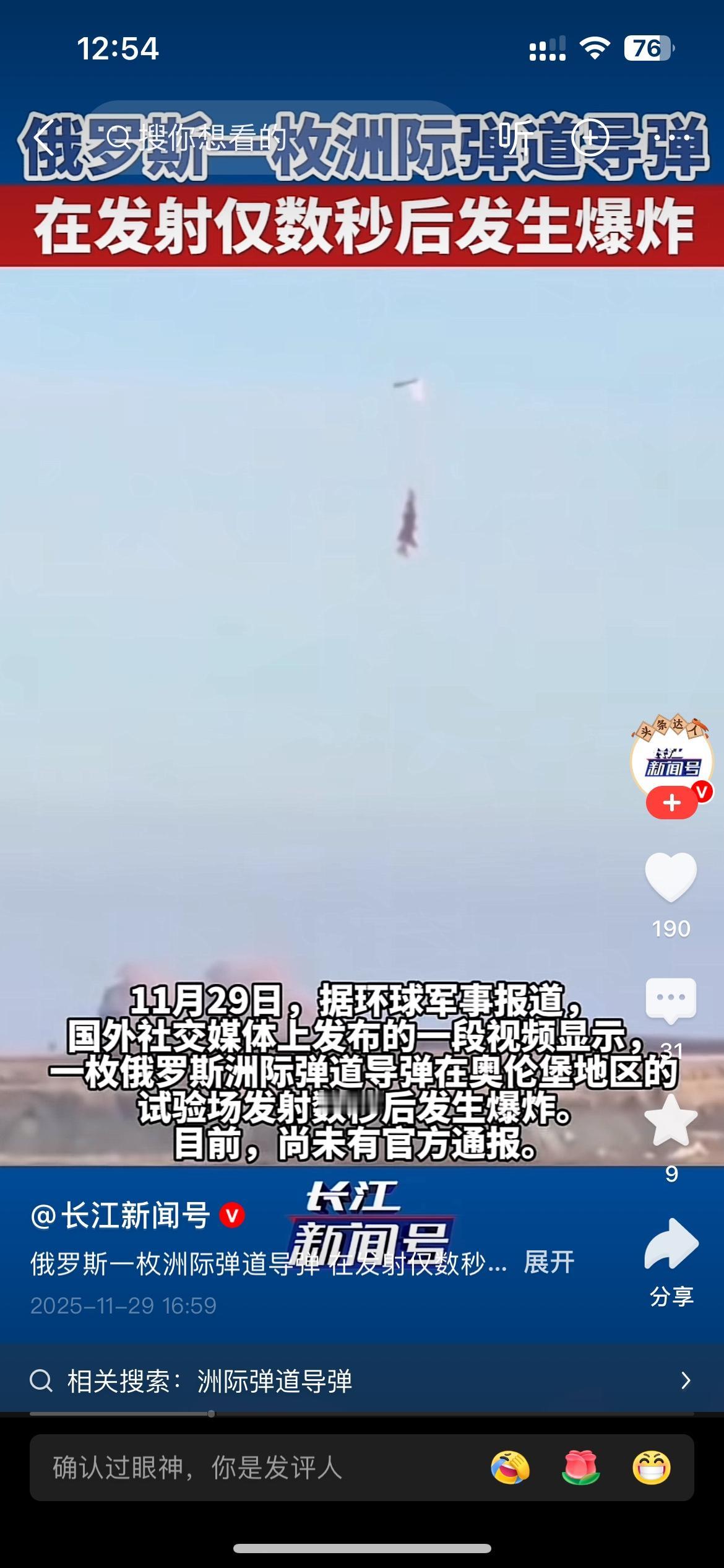 俄罗斯一枚洲际弹道导弹在奥伦堡地区试验场试射数秒后,落地爆炸,巨大的蘑菇云腾空而起! 俄罗斯洲际弹道导弹发射失败的次数现在是接二连三,从2023年2月、到2024年9月、再到现在的2025年11月29日的洲际弹道导弹失败。 感觉俄罗斯一直在吃苏联时代的洲际弹道导弹的技术人才储备的老本,而新款洲际弹道导弹接连不断发射失败,和俄罗斯的人才储备,新老人才接替“青黄不接”有关。