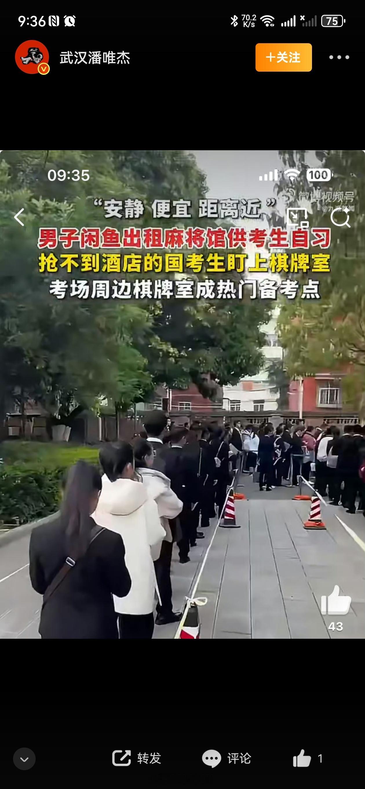 考场周边棋牌室成国考生热门备考点国考临近,考场周边部分棋牌室意外走红,成为考生热门备考点。这些棋牌室凭借舒适座椅、稳定WiFi、充足插座等基础设施,加之可灵活预约、噪音控制得当的优势,弥补了图书馆一座难求、闭馆时间早的短板。