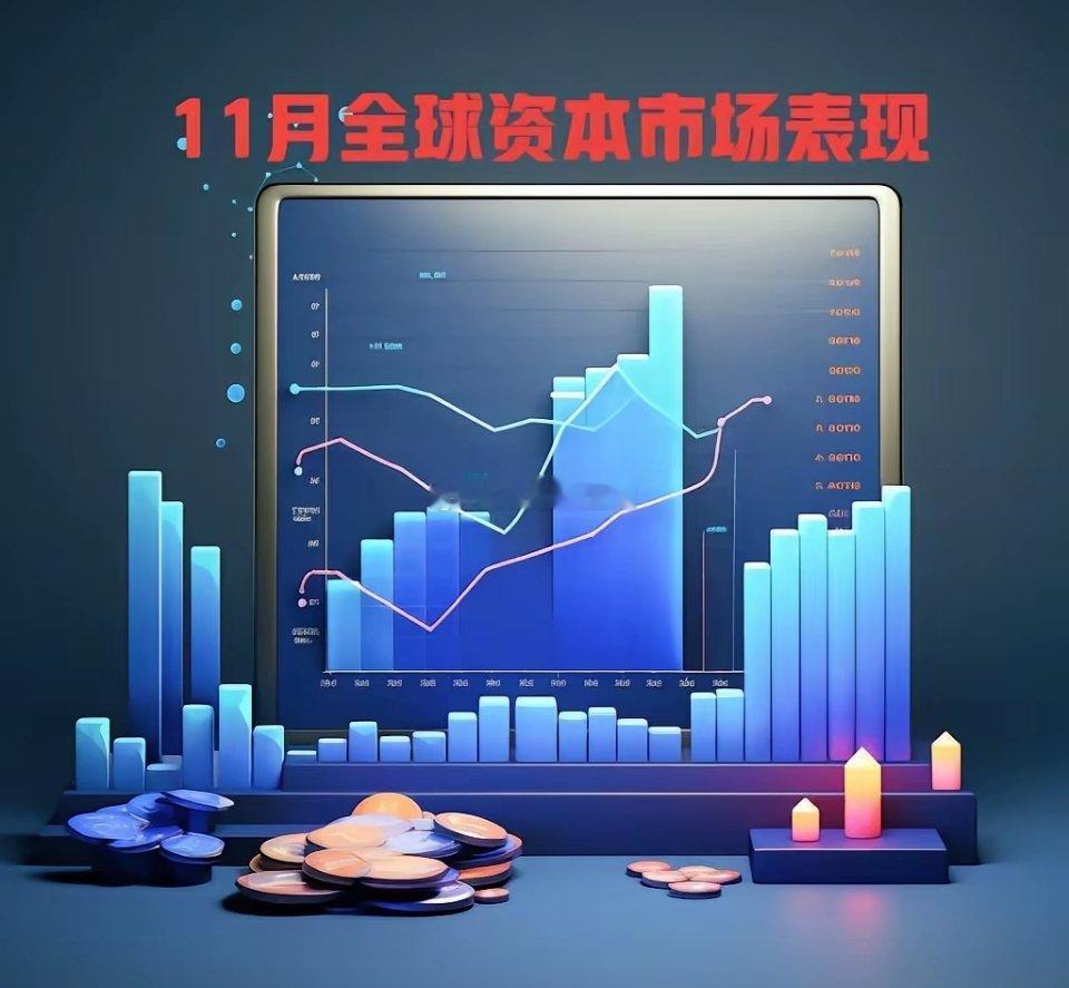 11月资本市场盘点:黄金一枝独秀11月行情收官,主要指数月度涨幅排名:1. 黄金:6.50%2. 法国CAC40:0.02%3. 英国富时100:0.01%4. 恒生指数:-0.18%5. 道琼斯:-0.32%6. 德国DAX30:-0.53%7. 纳斯达克:-1.51%8. 上证:-1.67%9. 日经225:-4.12%10. 创业版:-4.23%11. 韩国KOSPI:-4.40%12. 恒生科技:-5.23%13. 科创板:-6.24%1.避险情绪升温:黄金单月大涨6.5%,成为最大赢家2.欧美市场稳健:英法股指基本持平,抗跌性较强3. 科技股承压:科创板和恒生科技回调,回调幅度超过5%4.亚洲市场调整:日韩和A股创业板,回调幅度都超过4%临近年末,市场开始趋于平稳,我们需要保持均衡配置,适当关注避险资产。股票财经黄金A股