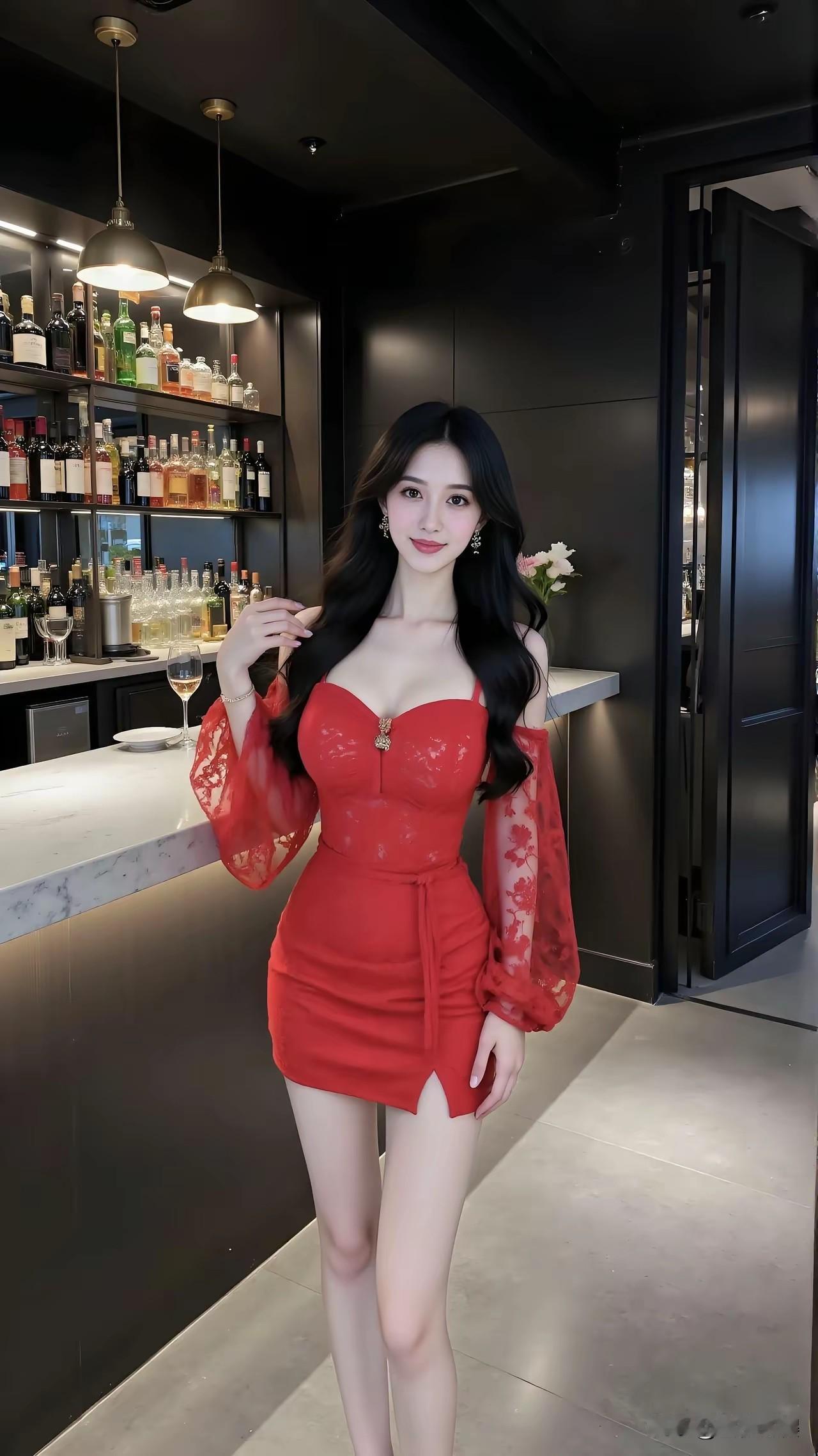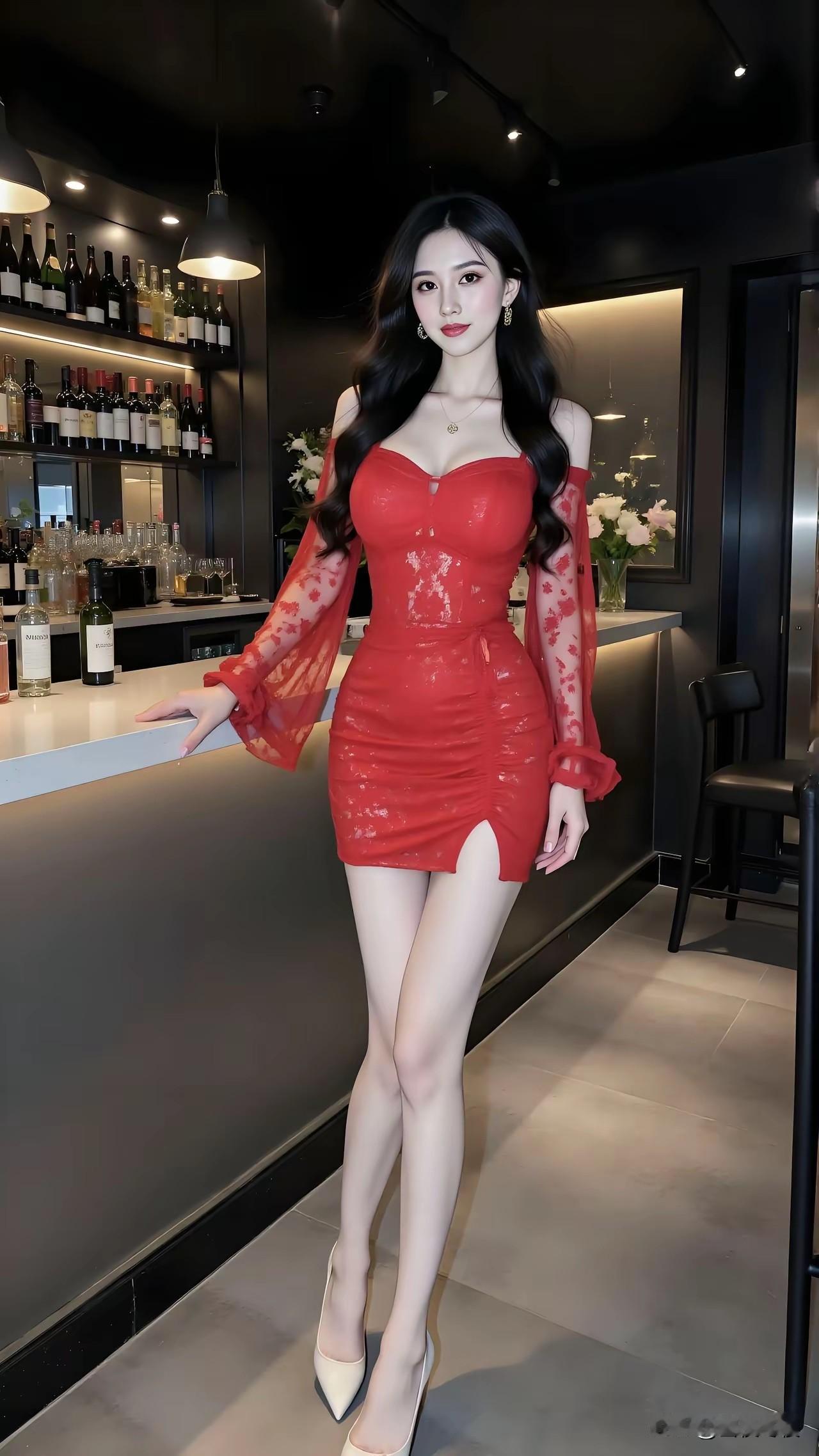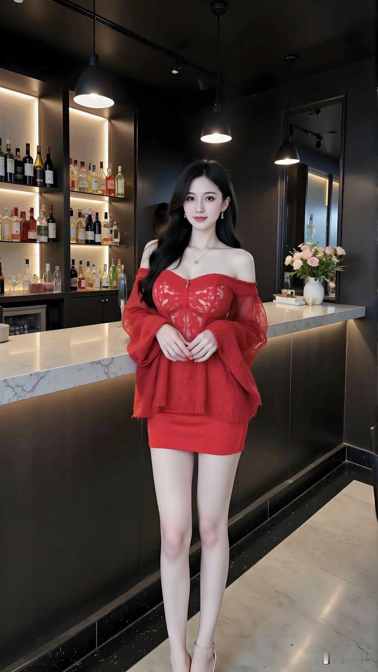 这位女士在酒吧里穿得非常亮眼。