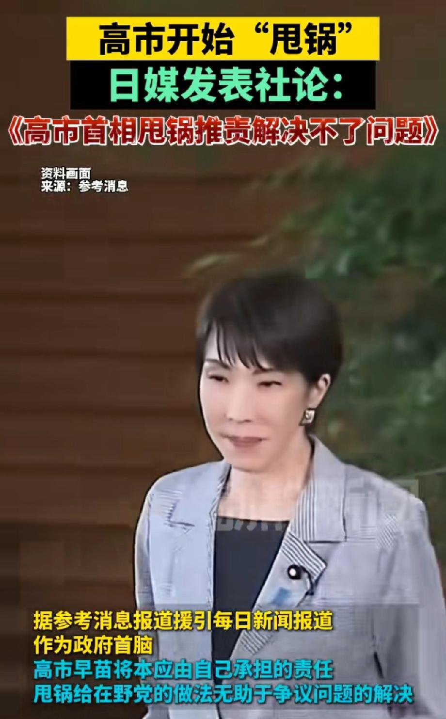 高市早苗这甩锅推责的操作真是让人无语。11月26日她在国会党首辩论上,就“台湾有事”表态引发争议后,竟把责任往在野党身上推。她此前称“台湾有事”可能构成日本“存亡危机事态”,日本可行使集体自卫权,遭到中国强烈反对。辩论时她强调“基于具体情况综合研判”,还暗示提问的在野党议员负责,仿佛自己毫无过错。 日媒都看不下去批她了,这做法根本无助于解决问题。自民党本就因“黑金丑闻”选举失利,她还岔开政治献金话题,只说要和中国对话却没说清办法,日本政坛这是越来越让人看不懂了。