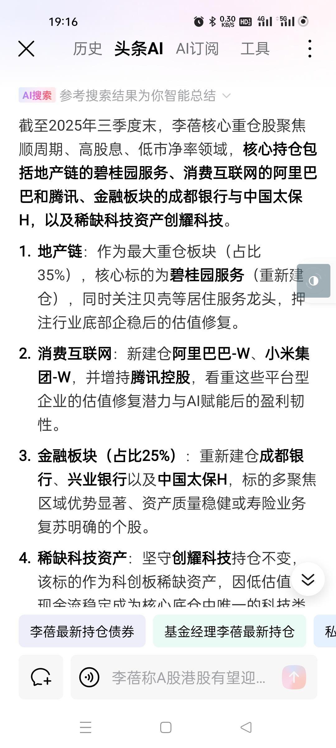 这家伙真是屈才了,既然看好大牛市,为什么持有银行地产?? 也是一个过气明星,汪汪队早就说过了,不能暴涨暴跌,其实暴涨没有,暴跌倒有了,所以我估计每年指数能有5-15%都非常不错了,不可能再有什么超级大牛市。。 你们说呢??