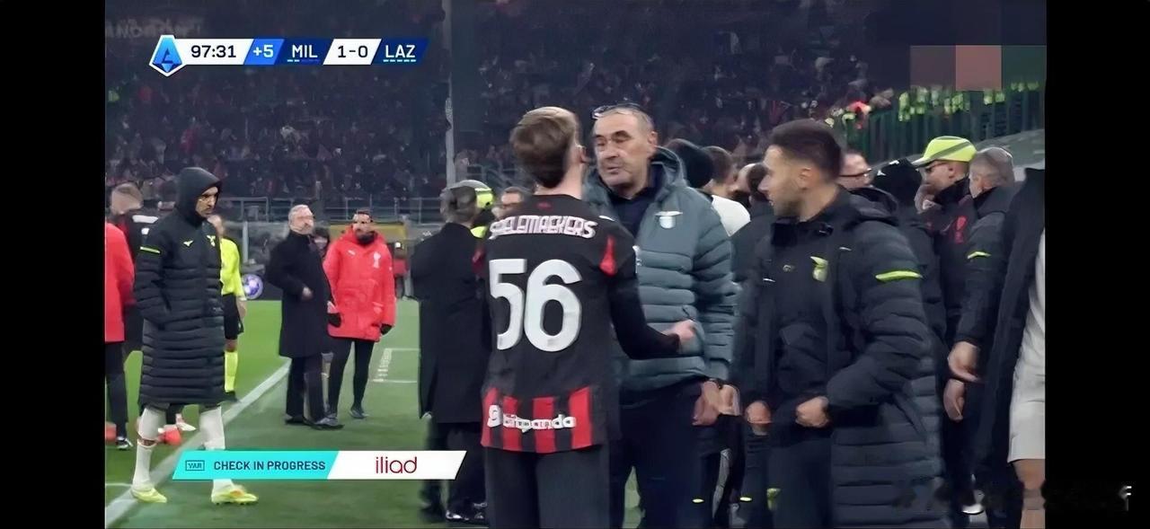 萨勒马克尔斯太坏了。当时萨勒马克尔斯去找萨里,我第一反应就是坏了,这孩子要挑事,毕竟之前他差点没抽萨里,阿莱格里被罚下了,孩子不爽,这是要把萨里送走,谁知道他去找萨里一脸坏笑的打招呼说你好教练,我们又见面啦。 这个镜头是一个长镜头,萨里本来挺轻松的,突然看到萨勒马克尔斯走过来马上脸上表情就凝重了,貌似是做好了再次被掐住喉咙的准备,谁知道萨勒马克尔斯一脸坏笑的打招呼,这个小子真的是太坏了,坏的那么可爱。 我当时看到这镜头我第一时刻以为因为阿莱格里被罚下去,萨勒马克尔斯气不过想去把萨里也搞下去,搞不下去也要搞炸了,谁知道萨勒马克尔斯打完招呼,还聊了几句,具体聊的啥就不清楚了,但彼此看着还挺平静的,估计是友好的沟通。 这个事情要说伊布拉希莫维奇,那次萨勒马克尔斯与萨里冲突完,伊布拉希莫维奇第一时间就带着萨勒马克尔斯道歉了,伊布拉希莫维奇作为球员真的有大哥的样子,谁知道做管理如此不堪。